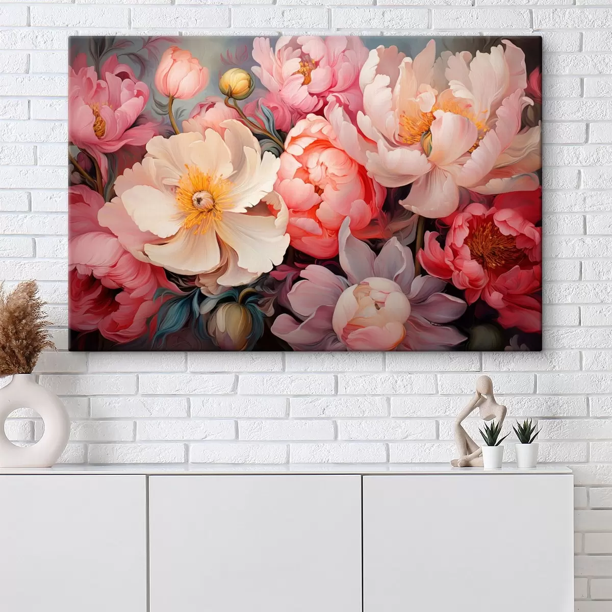 Obraz Bujne piwonie w różowych odcieniach w stylu malarstwa olejnego Nr s44936