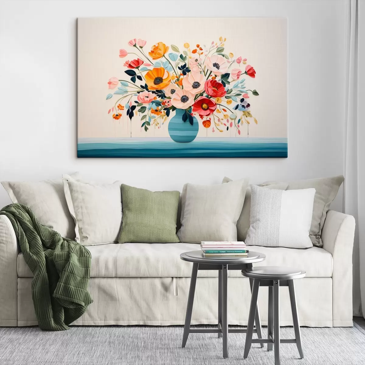 Obraz Kolorowy bukiet w niebieskim wazonie w stylu dekoracyjnym Nr s44937
