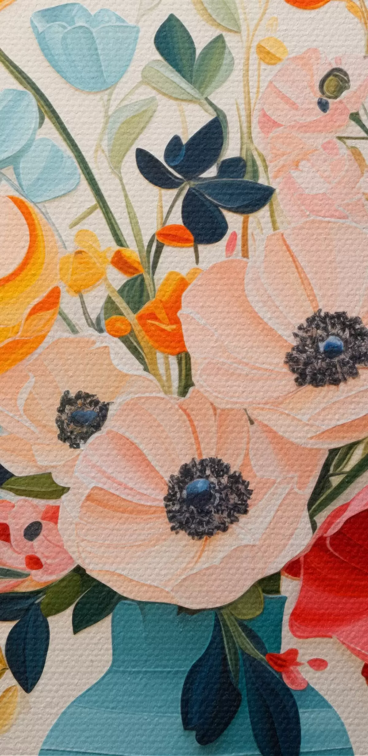 Obraz Kolorowy bukiet w niebieskim wazonie w stylu dekoracyjnym s44937