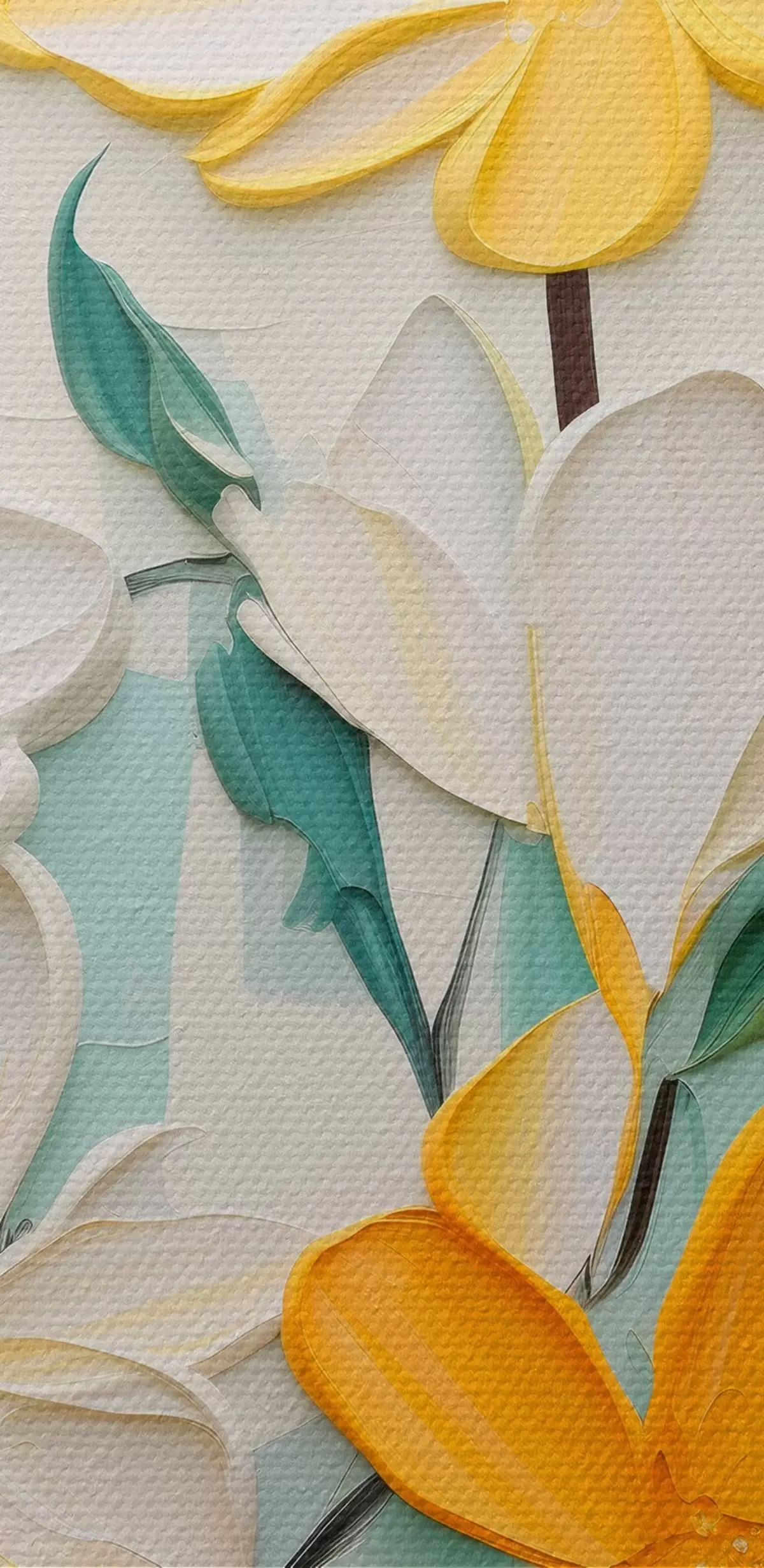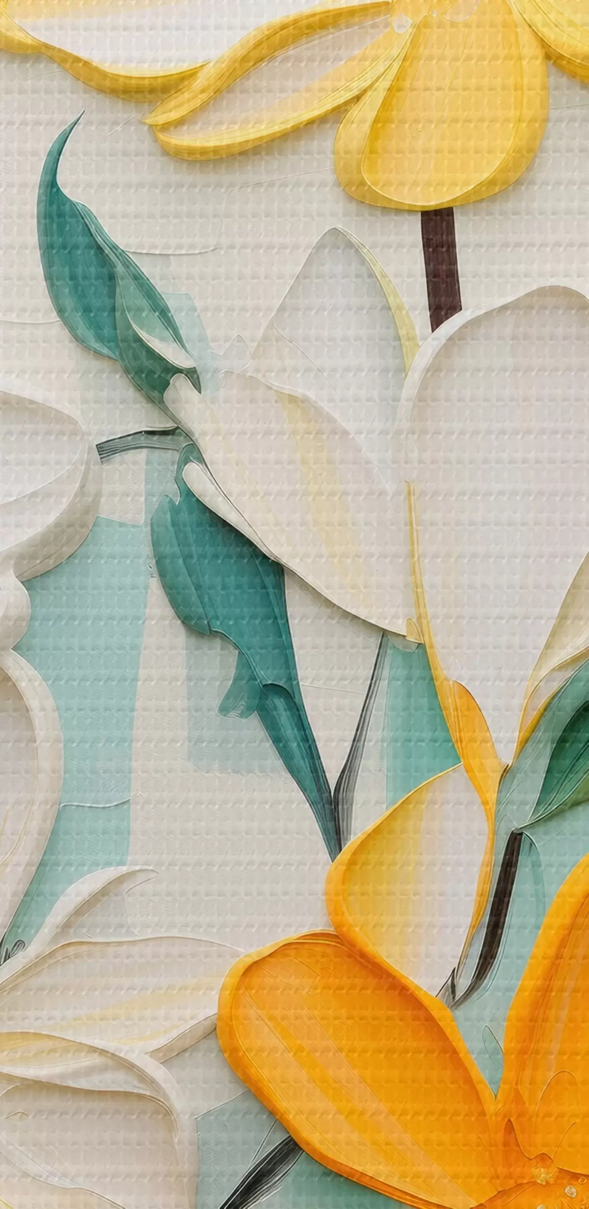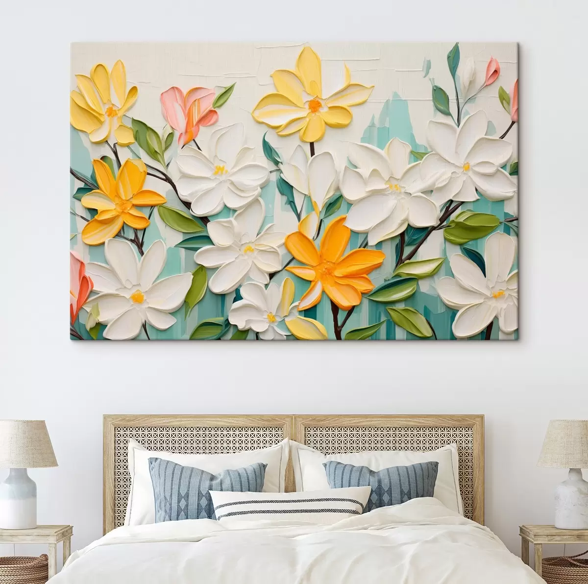 Obraz Wytłaczane kwiaty w jasnych kolorach w stylu imitującym pociągnięcie pędzlem Nr s44942