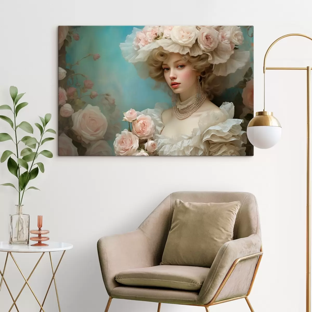 Obraz Elegancka dama w kapeluszu z kwiatami w artystycznym stylu Nr s44944