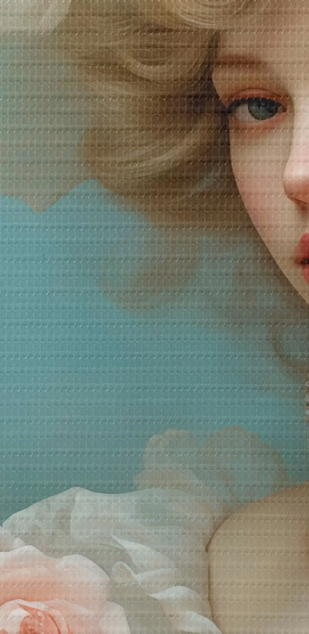 Drobny splot nici na tym płótnie przypomina powierzchnię profesjonalnych płócien artystycznych.