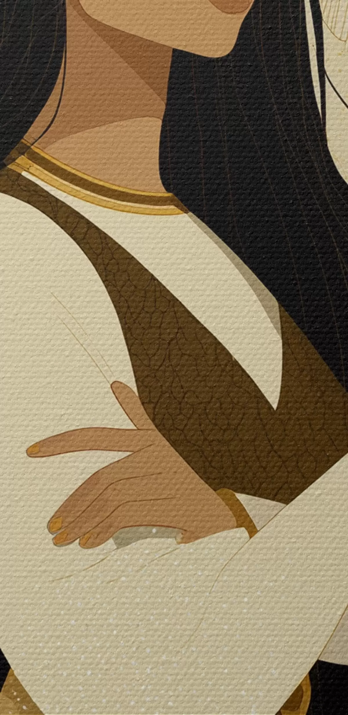 Drobny splot nici na tym płótnie przypomina powierzchnię profesjonalnych płócien artystycznych.