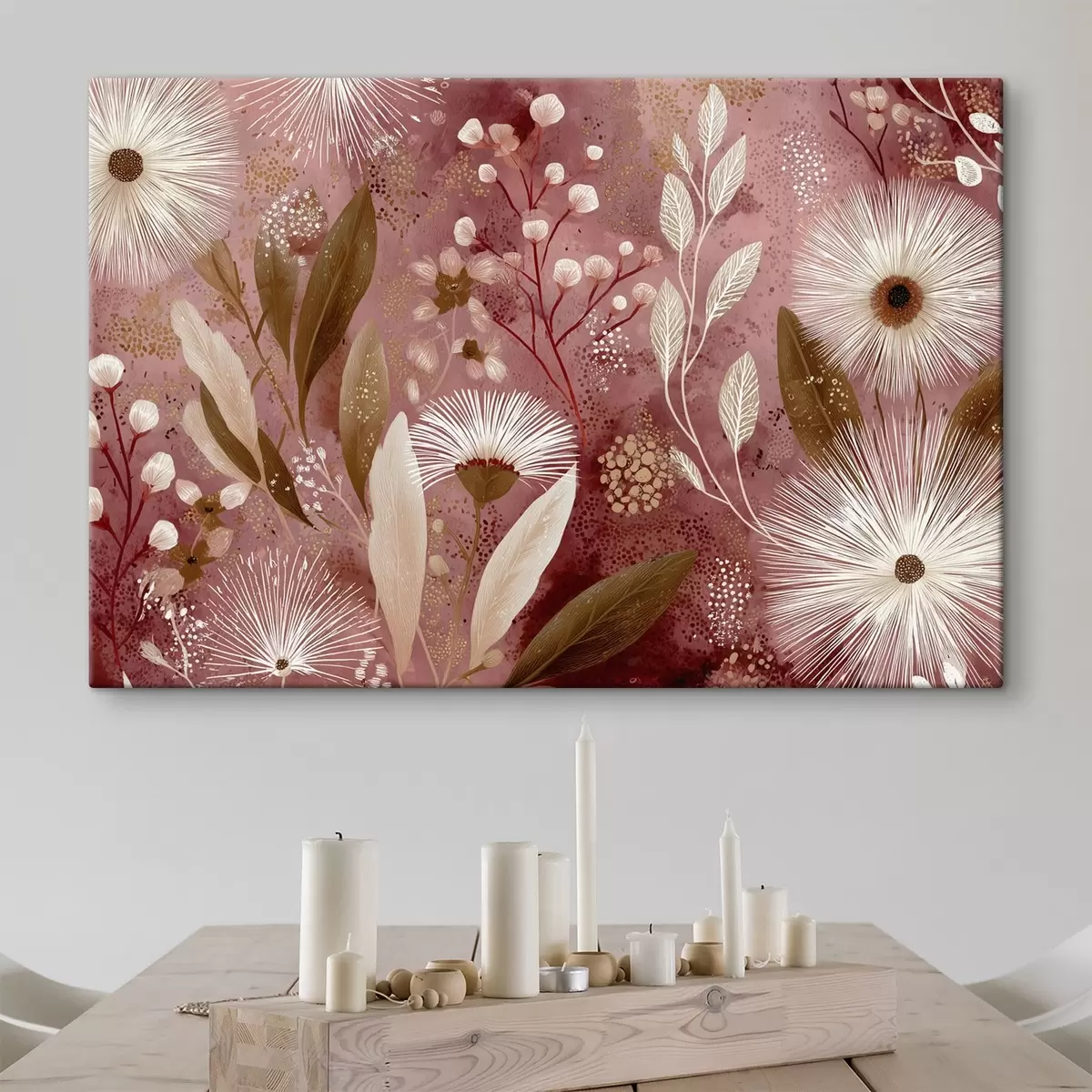 Obraz Białe kwiaty w stylu boho na czerwonym tle, szczegółowy rysunek Nr s44979