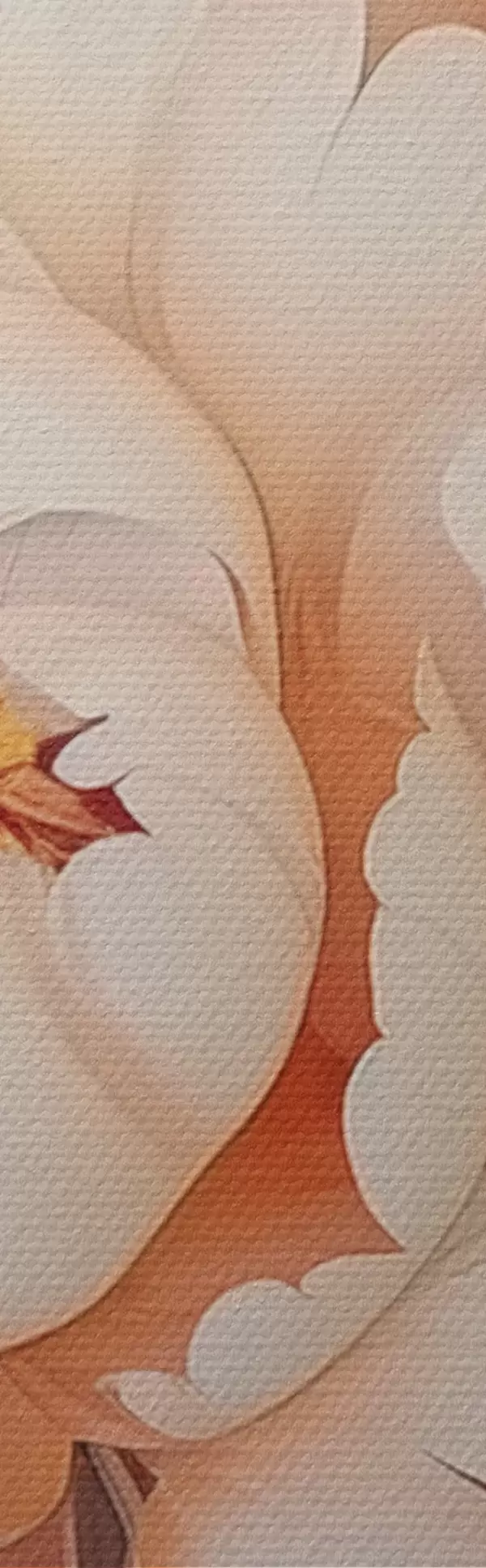 Drobny splot nici na tym płótnie przypomina powierzchnię profesjonalnych płócien artystycznych.