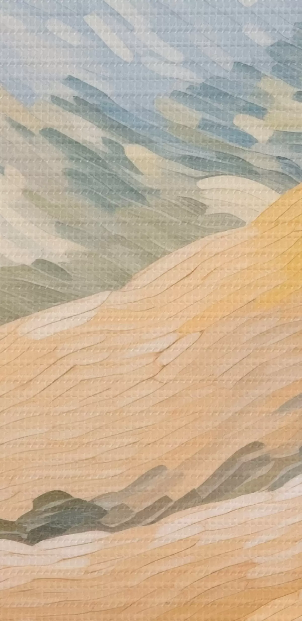 Drobny splot nici na tym płótnie przypomina powierzchnię profesjonalnych płócien artystycznych.