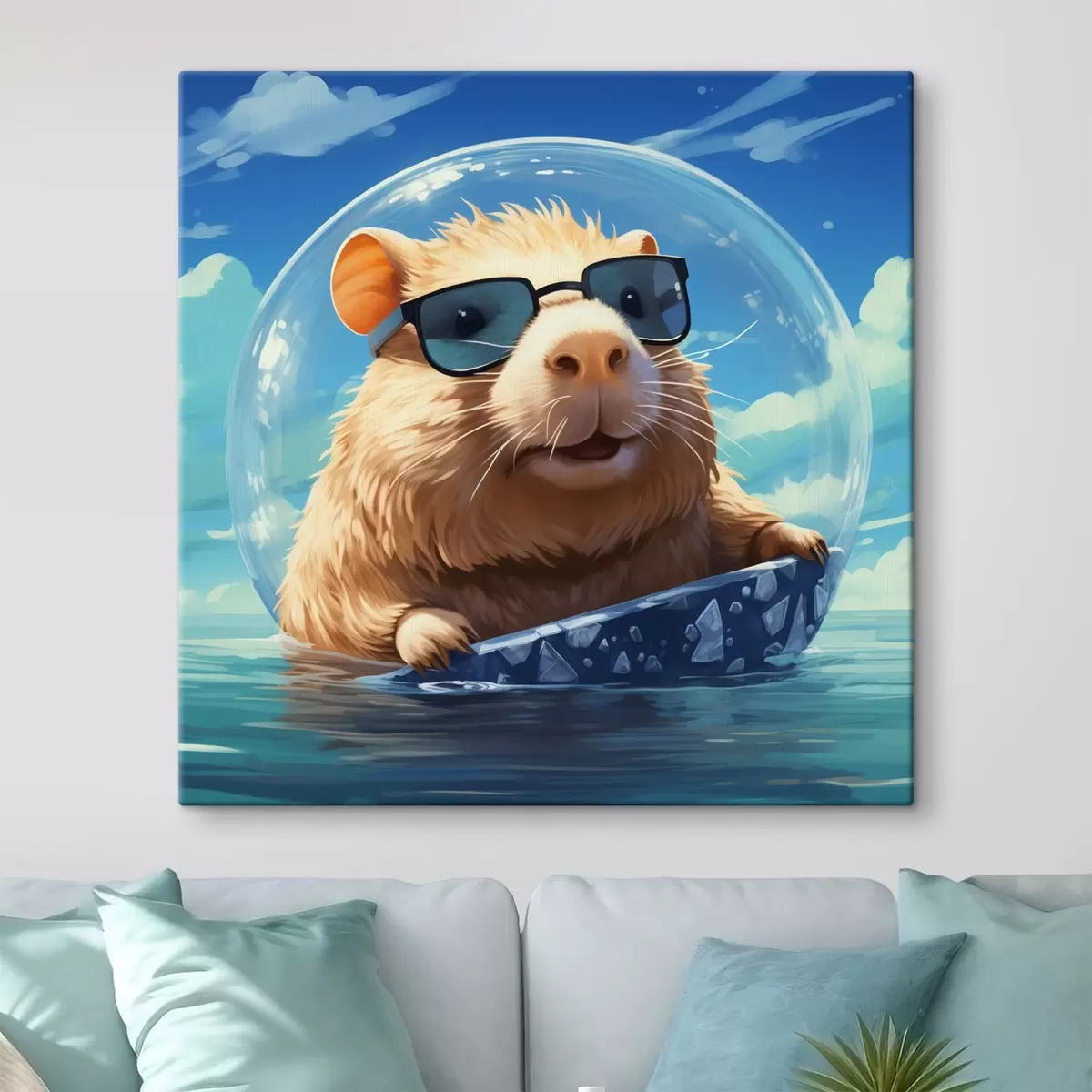 Obraz Wesoła kapibara w przezroczystej bańce na wodzie Nr s45029
