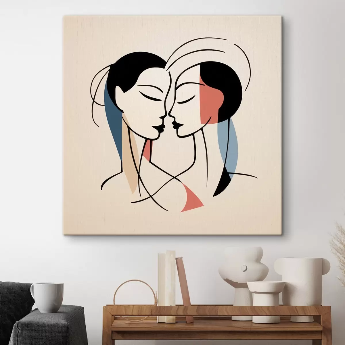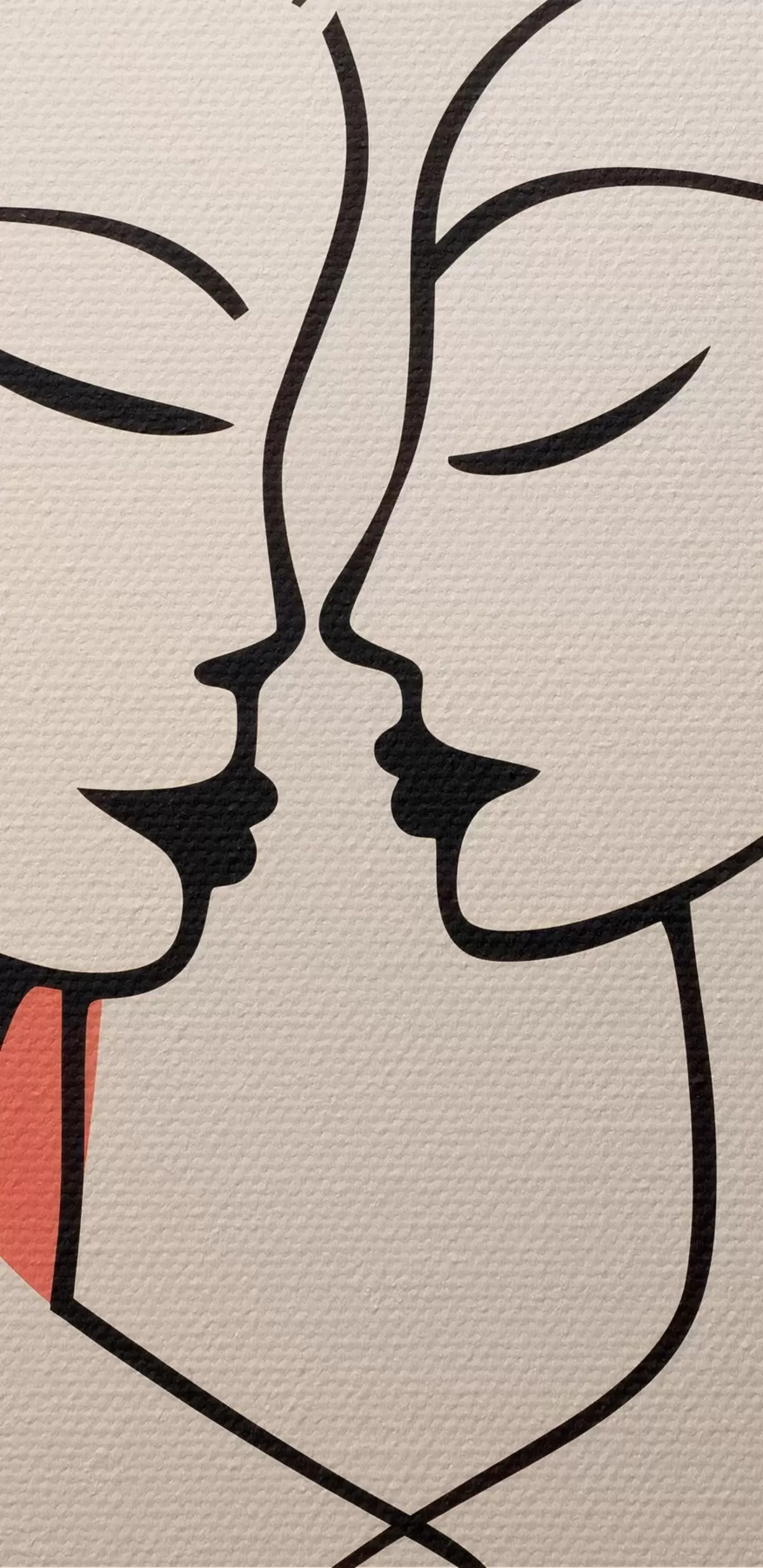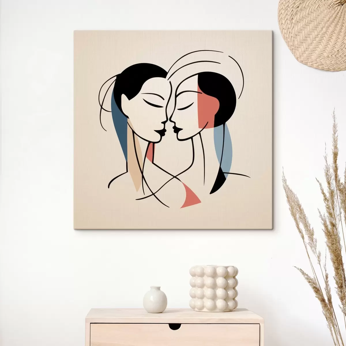 Obraz Dwie twarze w abstrakcyjnym stylu z kolorowymi elementami Nr s45037