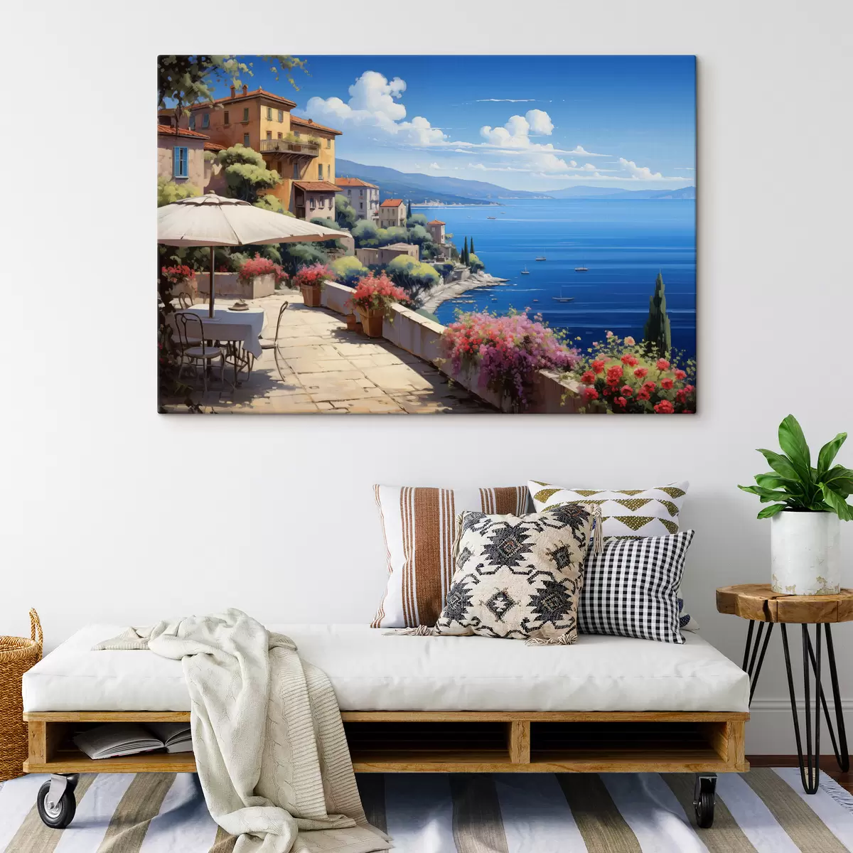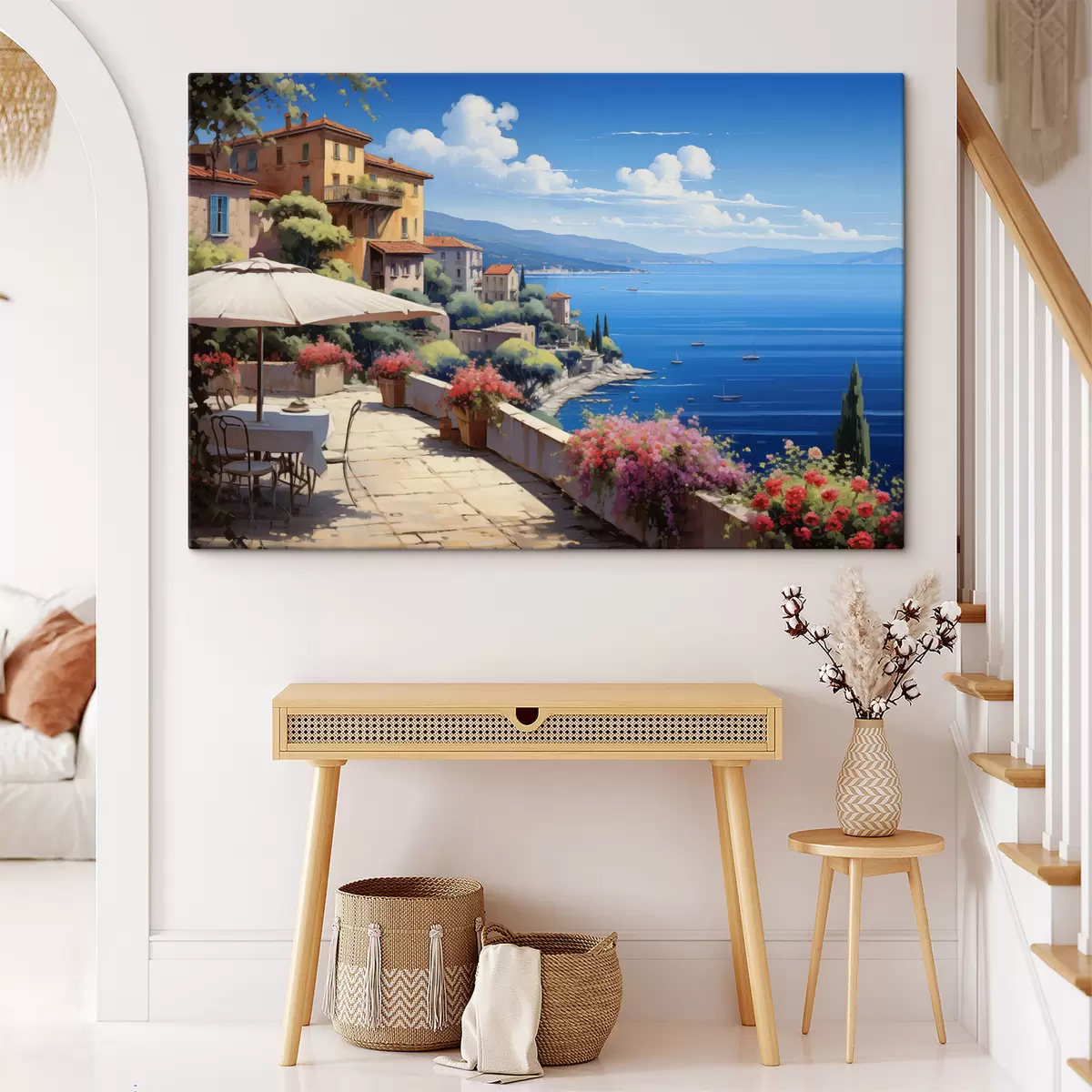 Obraz Śródziemnomorski krajobraz z kwitnącym tarasem w artystycznym stylu s45053