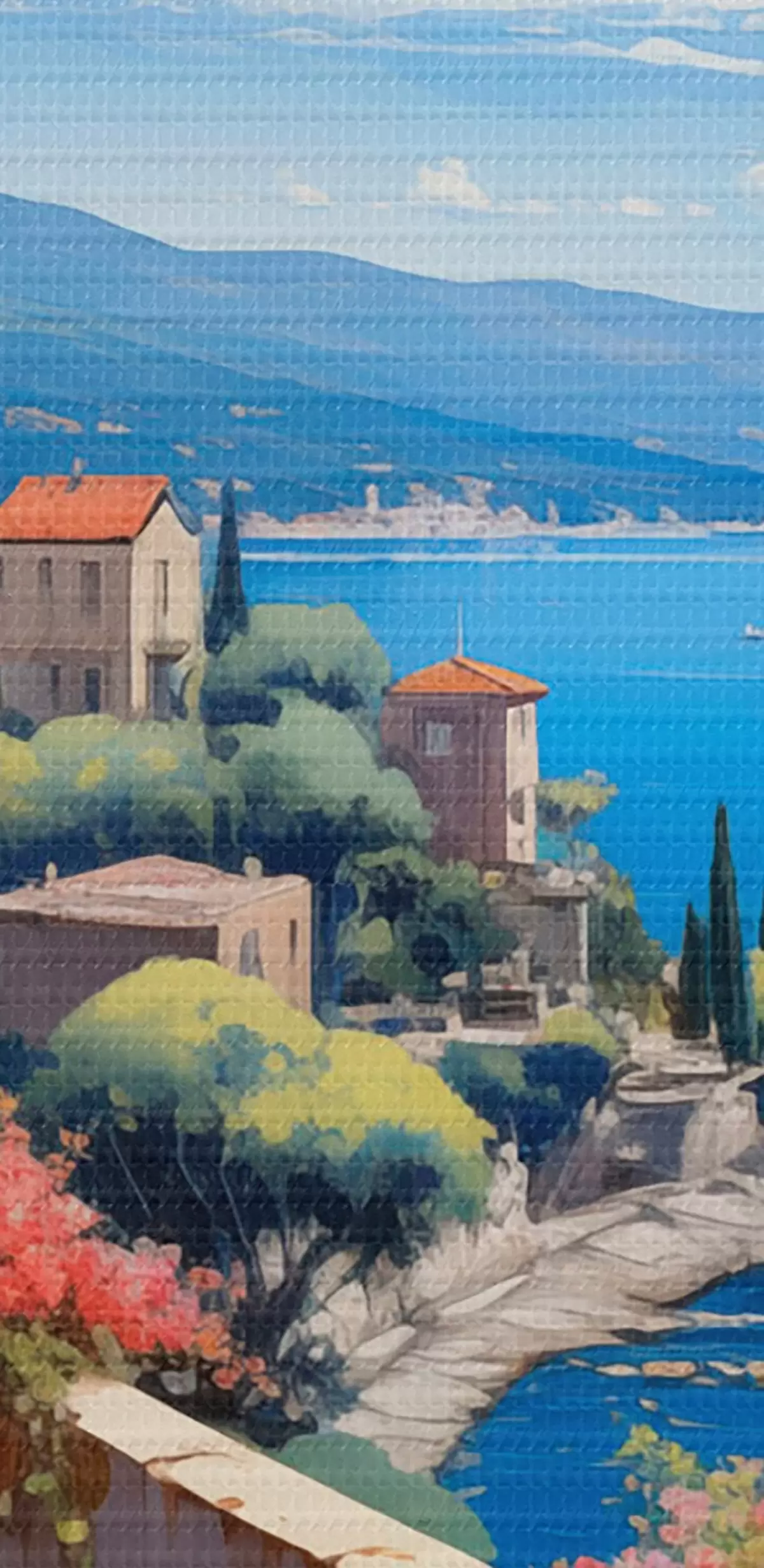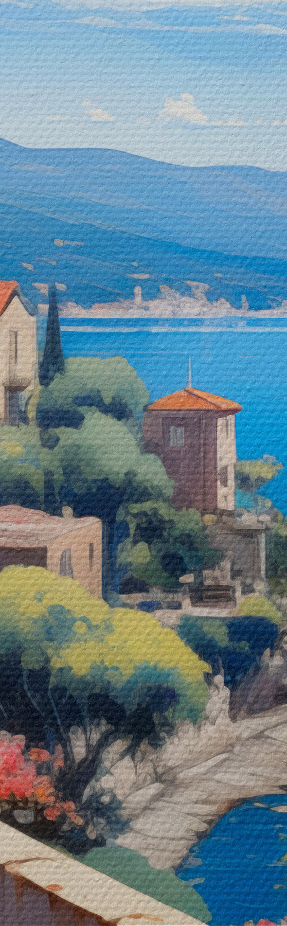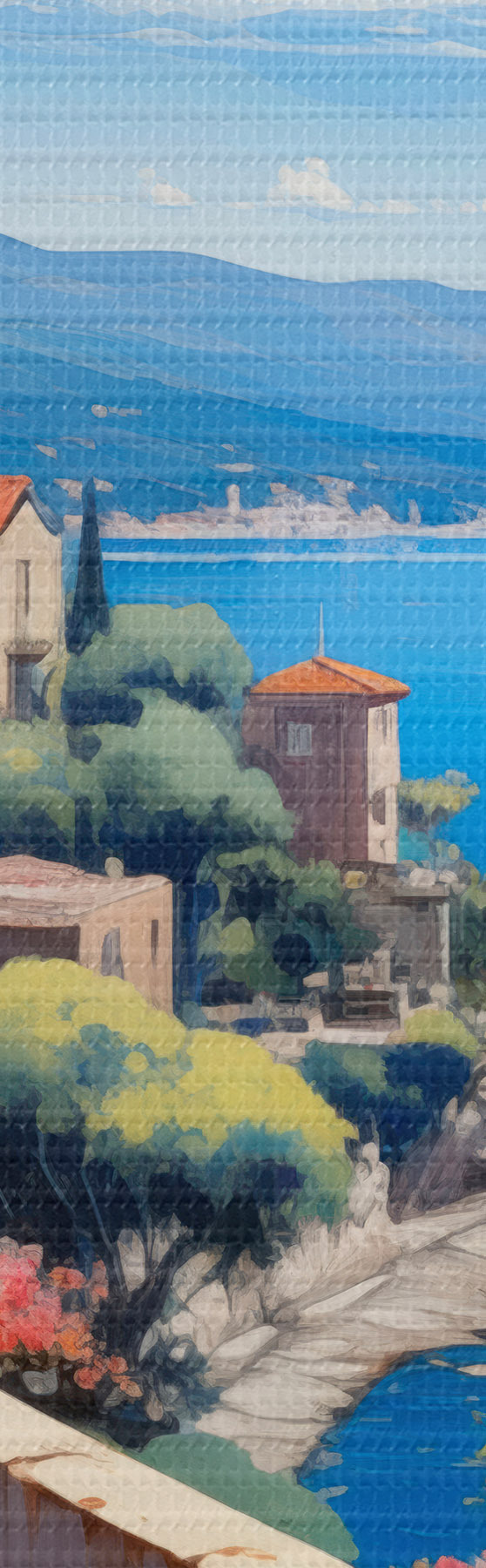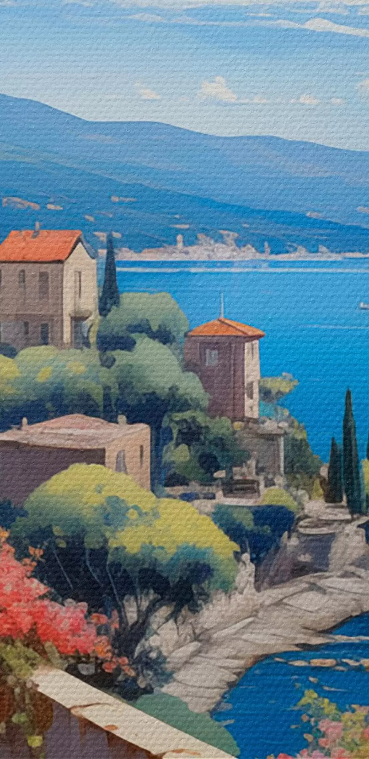 Obraz Śródziemnomorski krajobraz z kwitnącym tarasem w artystycznym stylu Nr s45053