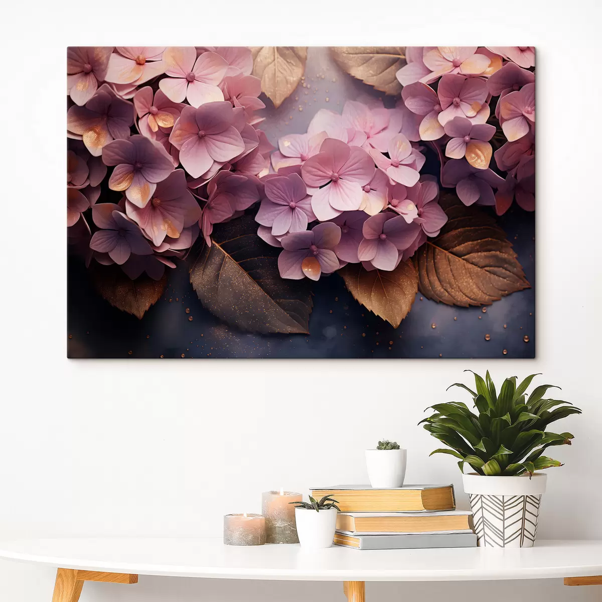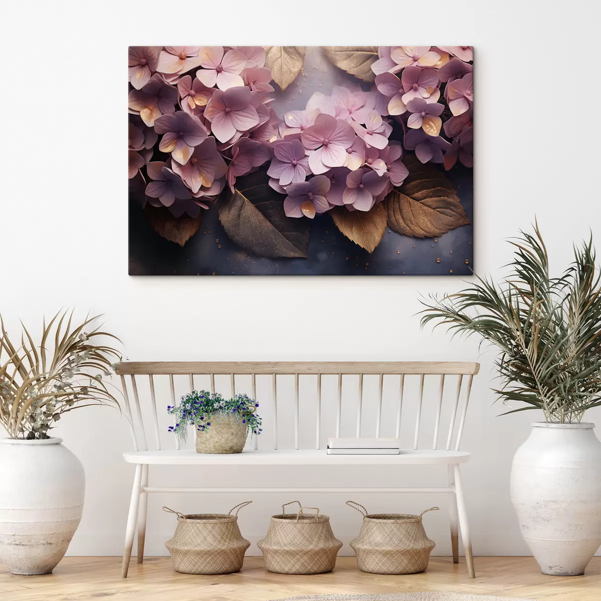 Obraz Bujne różowe hortensje na ciemnym tle w malarskim stylu Nr s45054