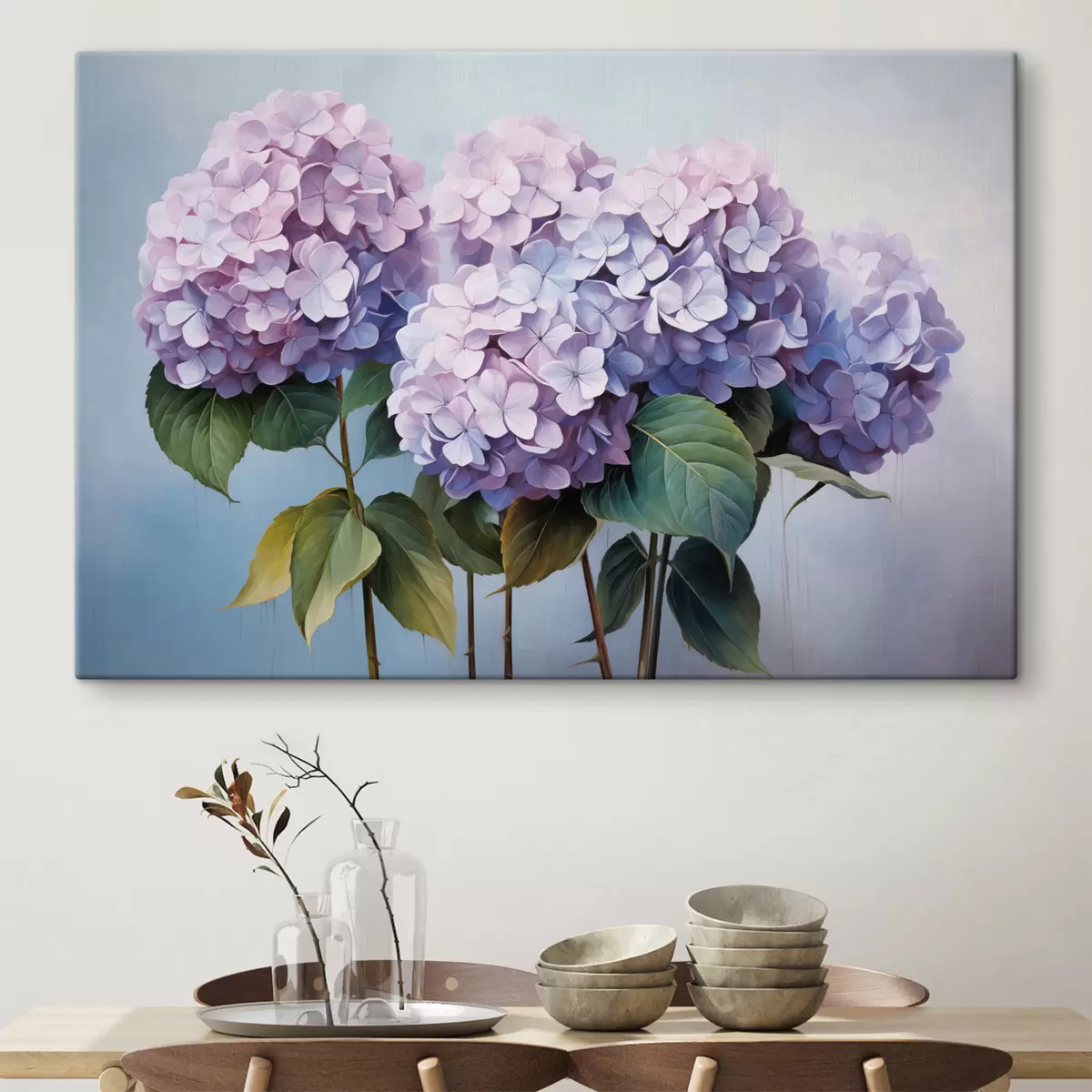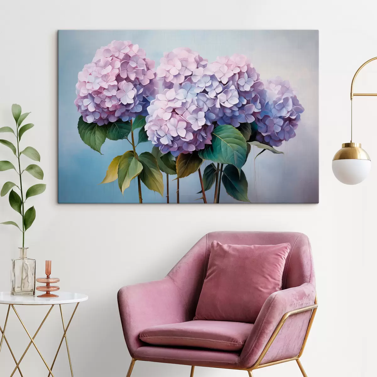 Obraz Różowe i liliowe hortensje w malarskim stylu Nr s45055