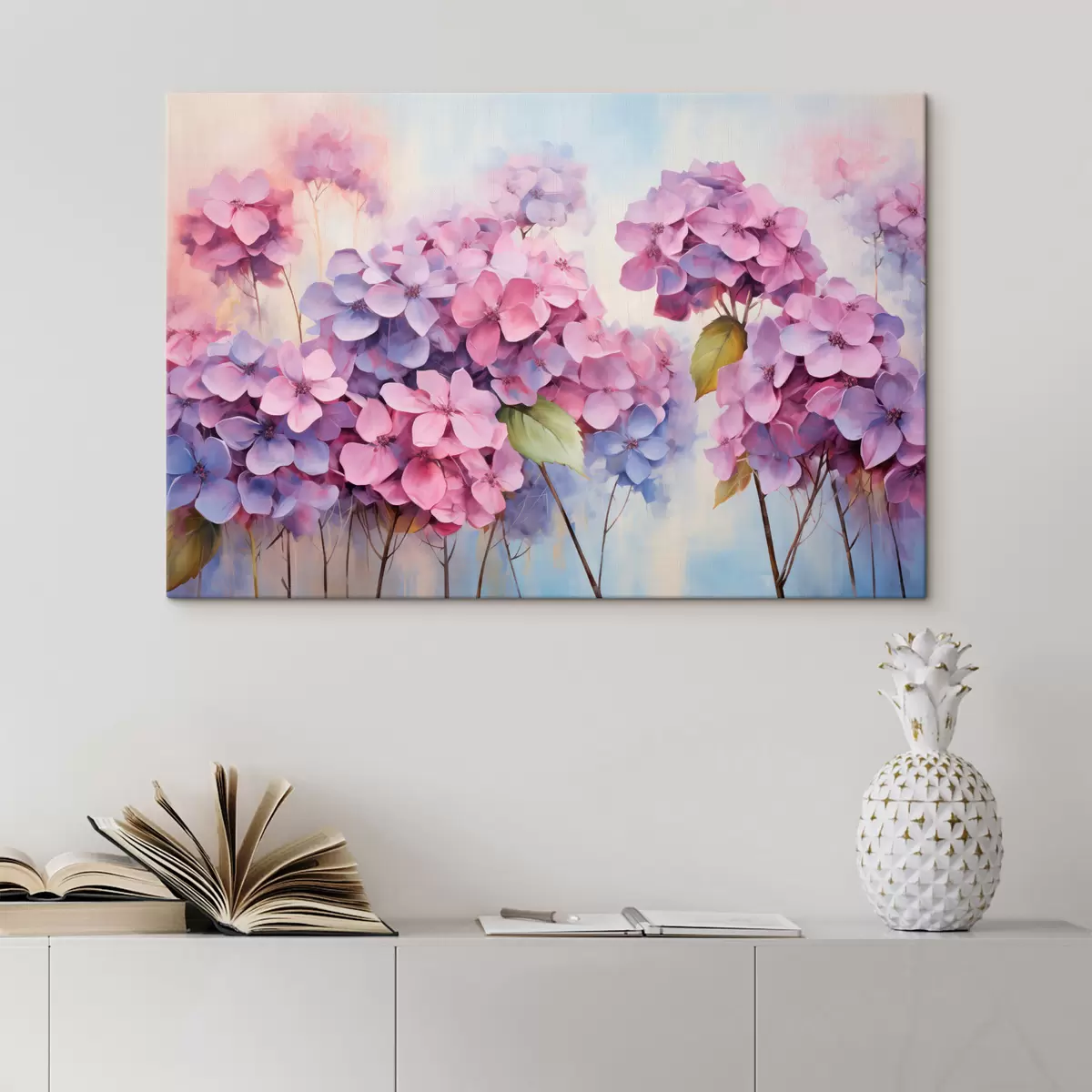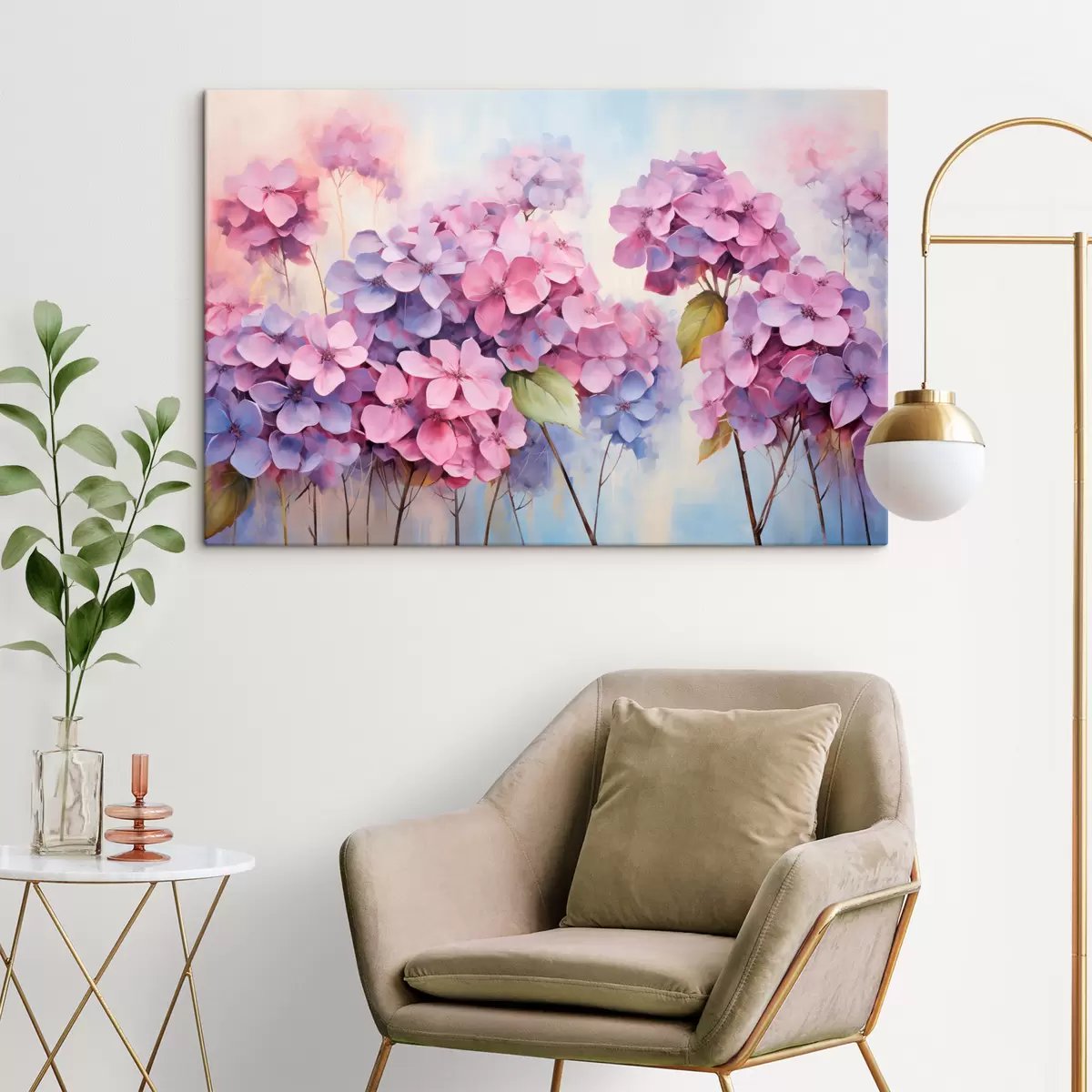 Obraz Pole delikatnych hortensji w pastelowych odcieniach Nr s45057