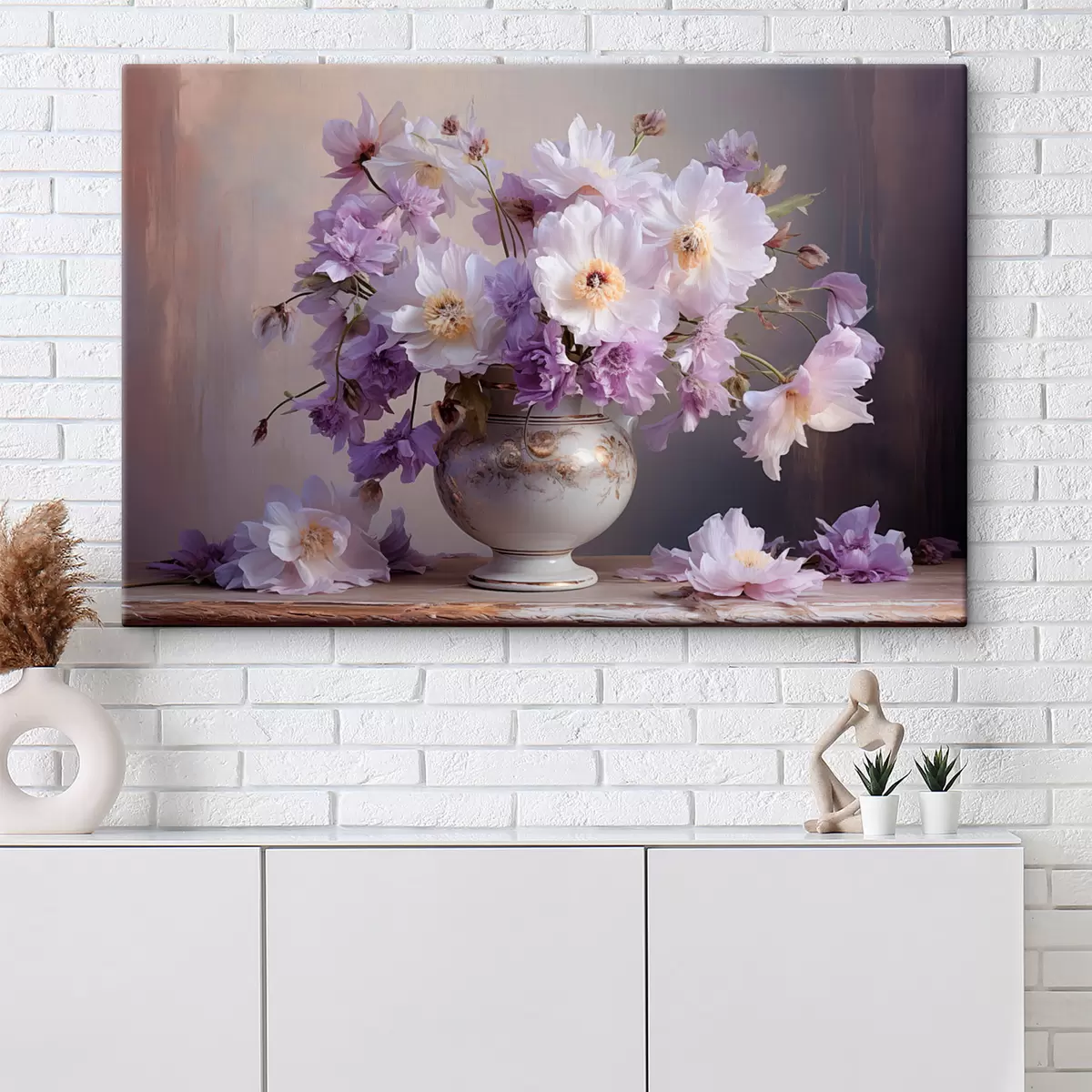 Obraz Kwiatowa martwa natura: białe i fioletowe kwiaty w artystycznym stylu Nr s45058