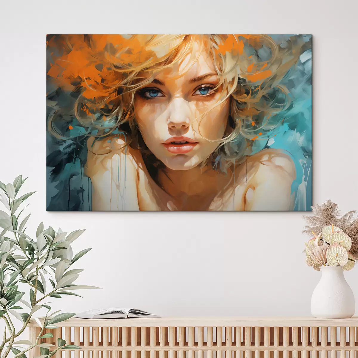 Obraz Ekspresyjny kobiecy wizerunek w abstrakcyjno-realistycznym stylu Nr s45061