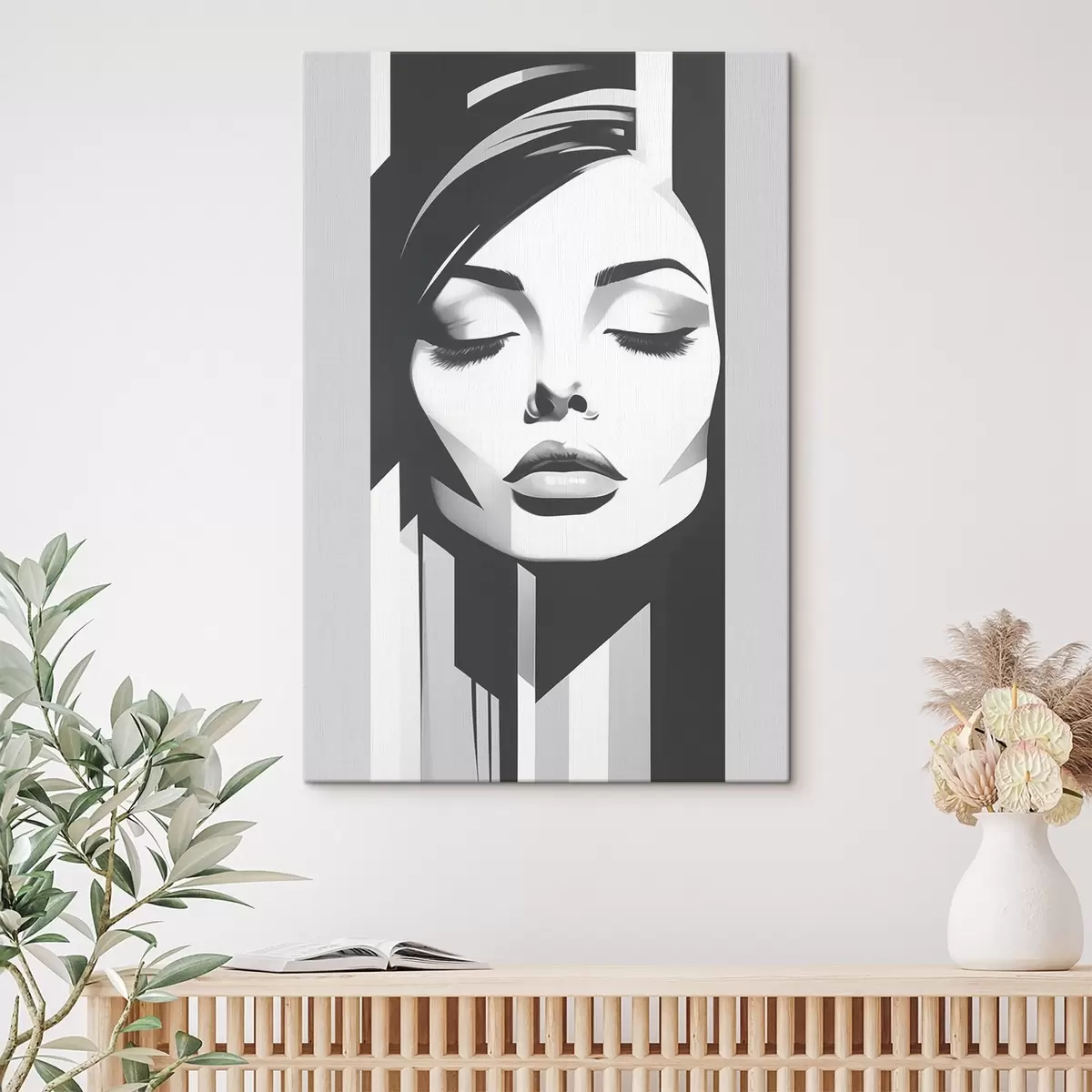 Obraz Czarno-biała twarz z zamkniętymi oczami Nr s45075