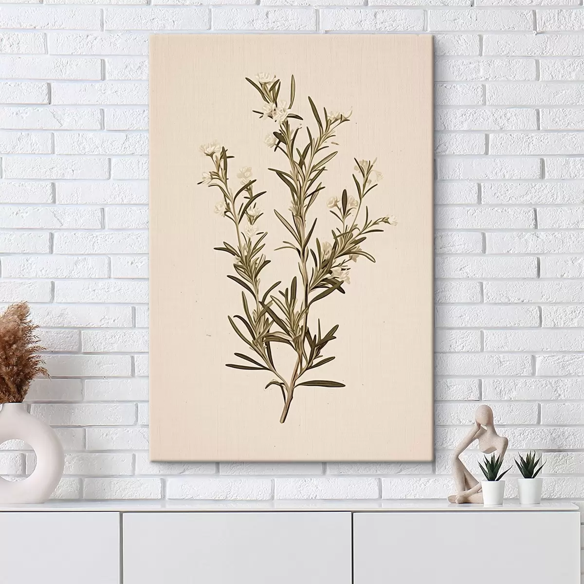 Obraz botaniczny, gałąź, beżowe tło, zioło, minimalny, roślina, zielone liście, łodyga s45098