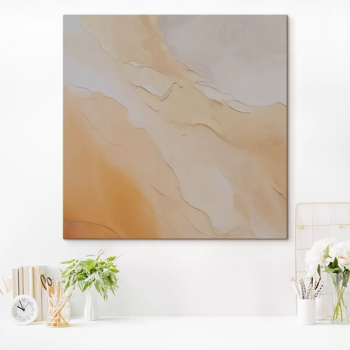 Obraz abstrakcyjny, płynny, beżowy, pomarańczowy, tekstura marmuru, miękkie połączenie, organiczne kształty, gładki s45105