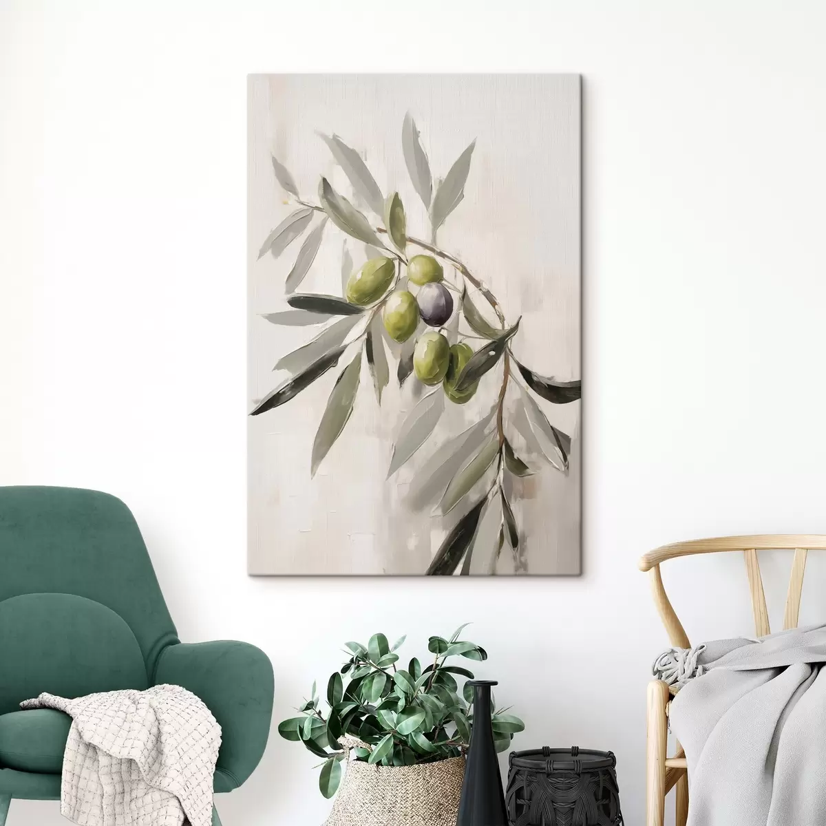 Obraz zielone oliwki, detal gałęzi, jasne tło, organiczny, naturalna paleta, rustykalny Nr s45110