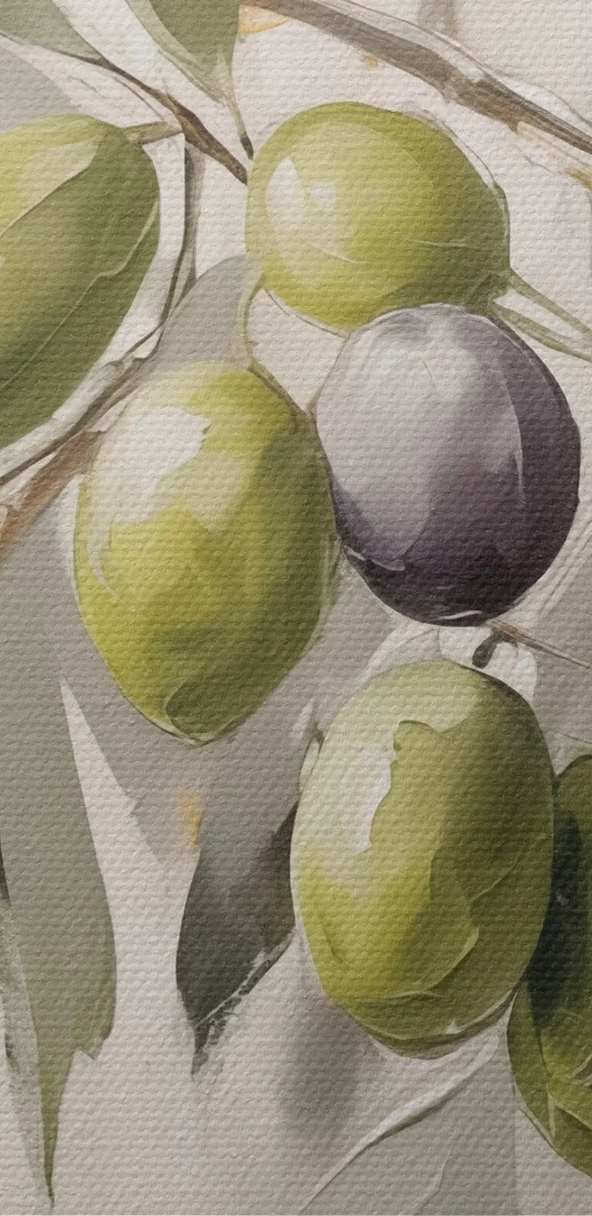 Obraz zielone oliwki, detal gałęzi, jasne tło, organiczny, naturalna paleta, rustykalny s45110
