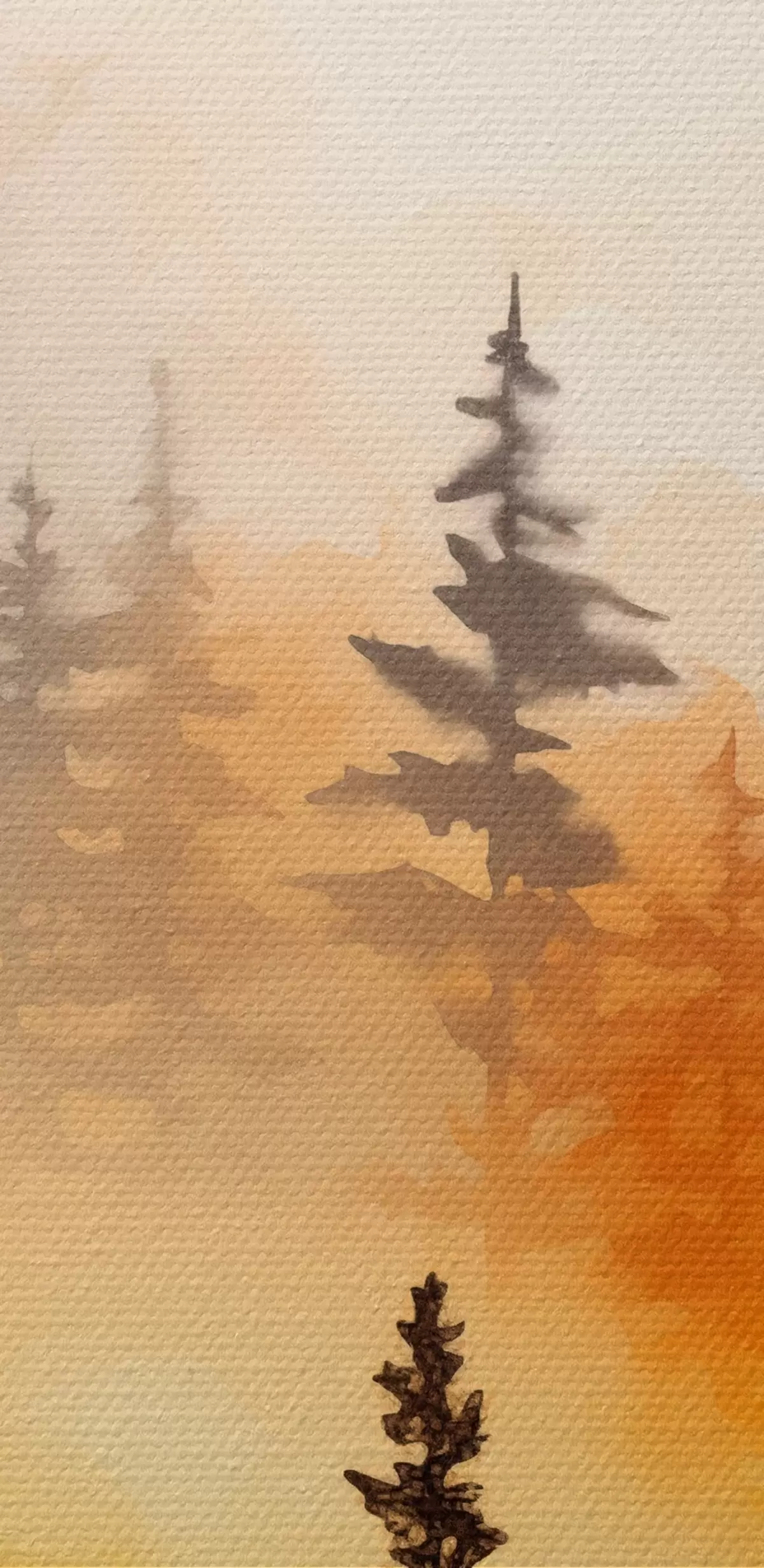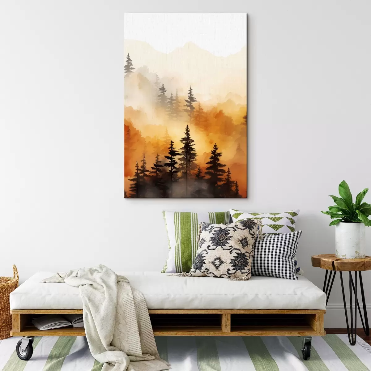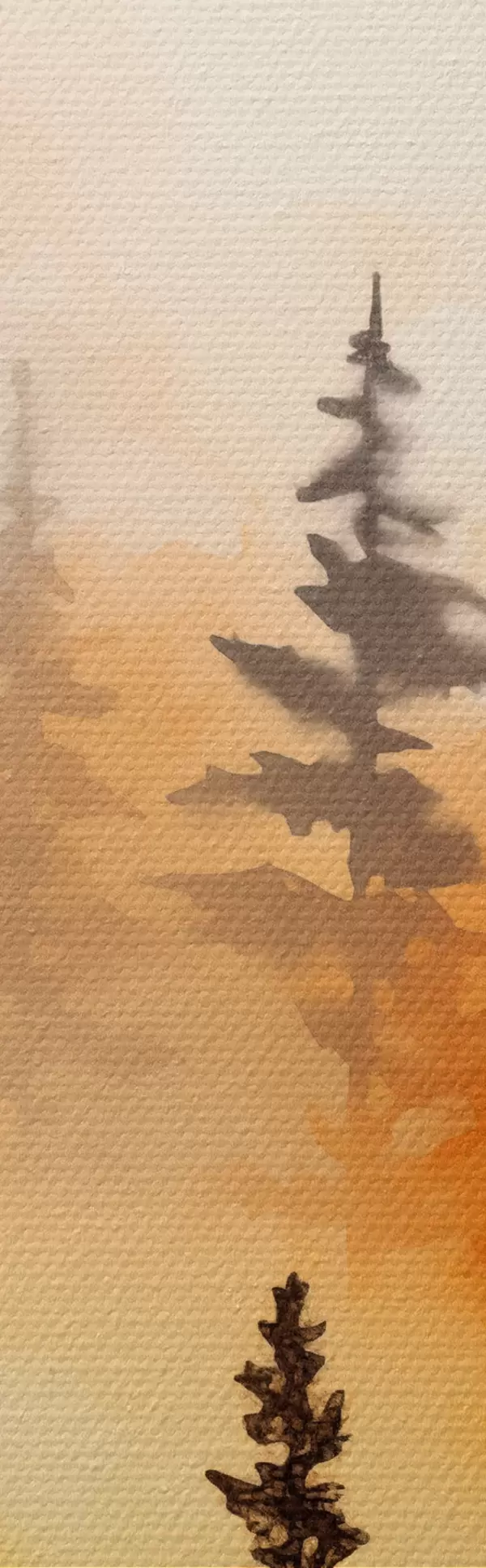 Obraz Pejzaż akwarelowy imitujący las z wysokimi sosnami i górami w tle Nr s45170