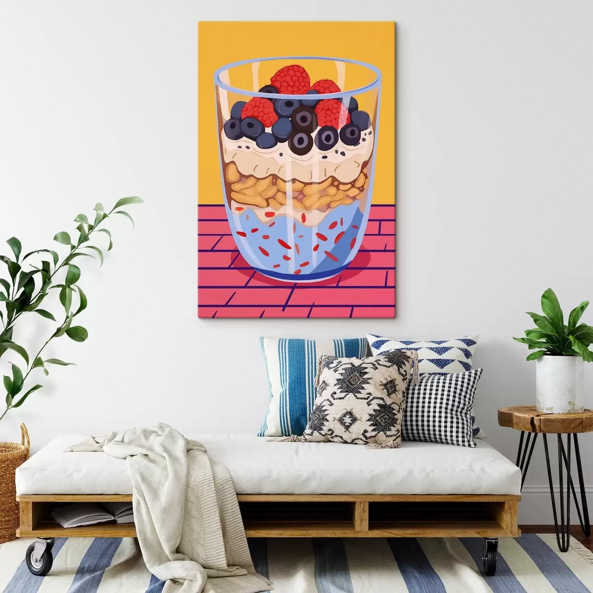 Obraz Szklanka z jogurtem, jagodami i płatkami zbożowymi Nr s45216