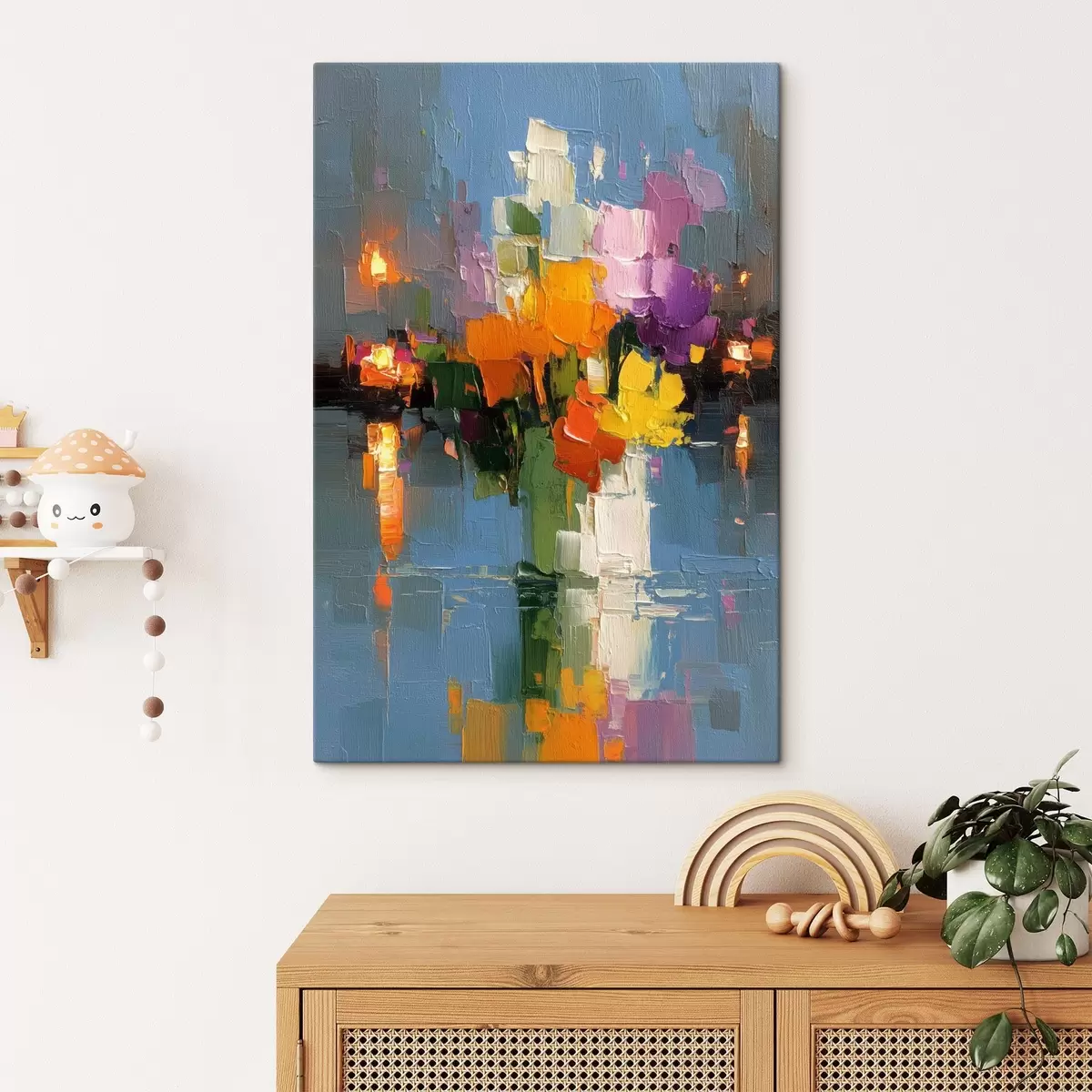 Obraz można powiesić natychmiast po jego otrzymaniu. Obraz zostanie naciągnięty na drewniany blejtram o szerokości 2 cm.
