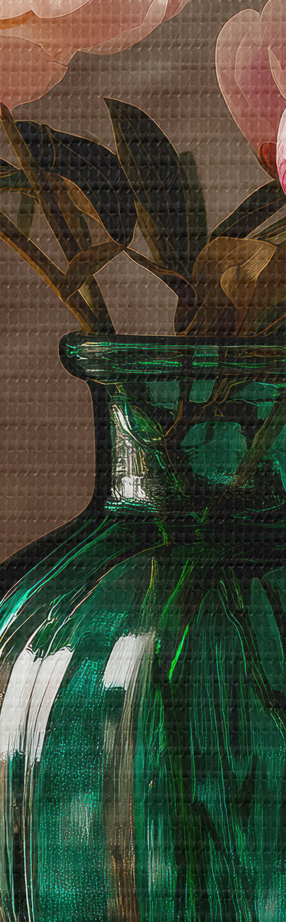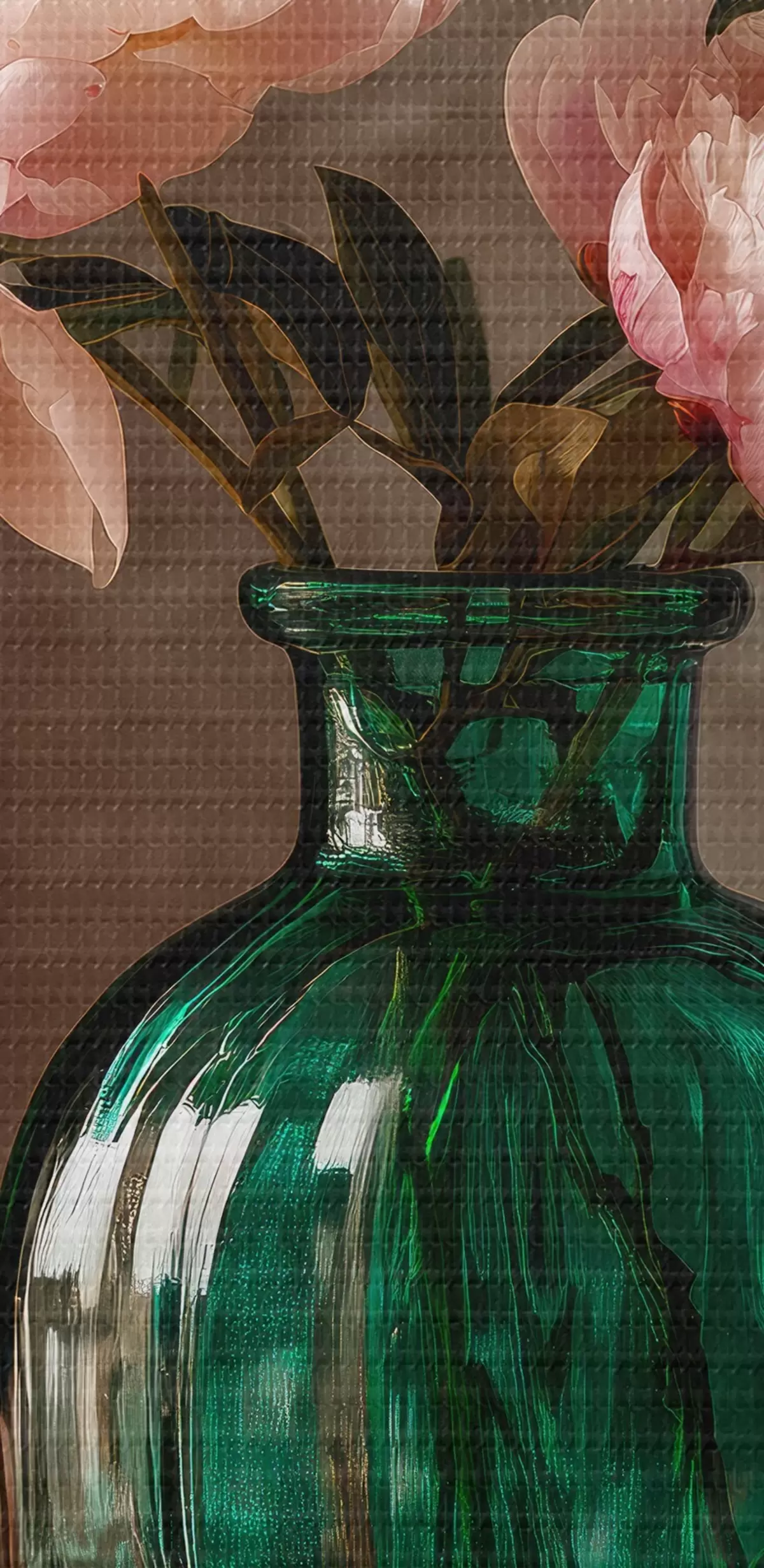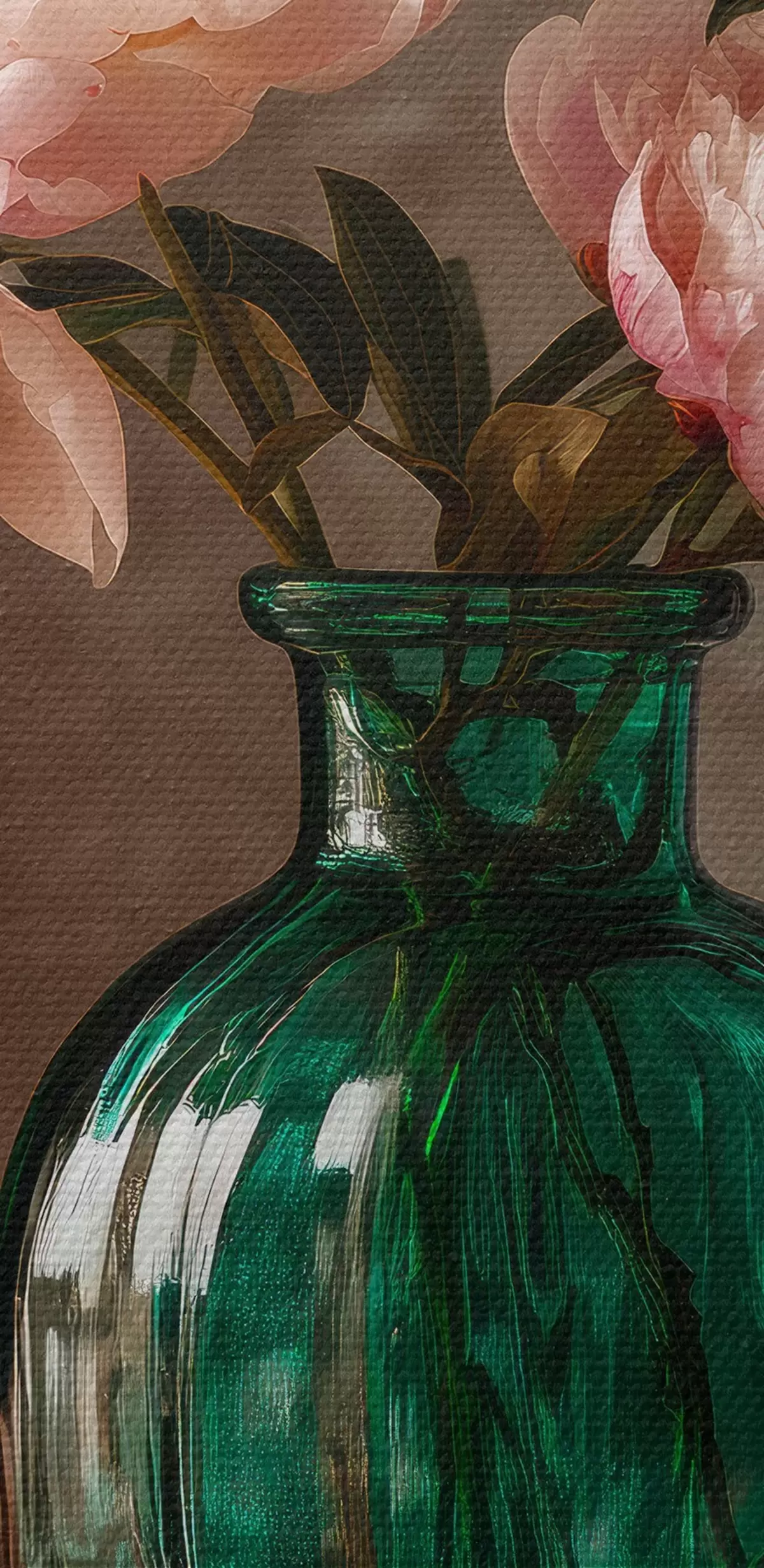 Obraz Delikatne różowe piwonie w szmaragdowym wazonie Nr s45261