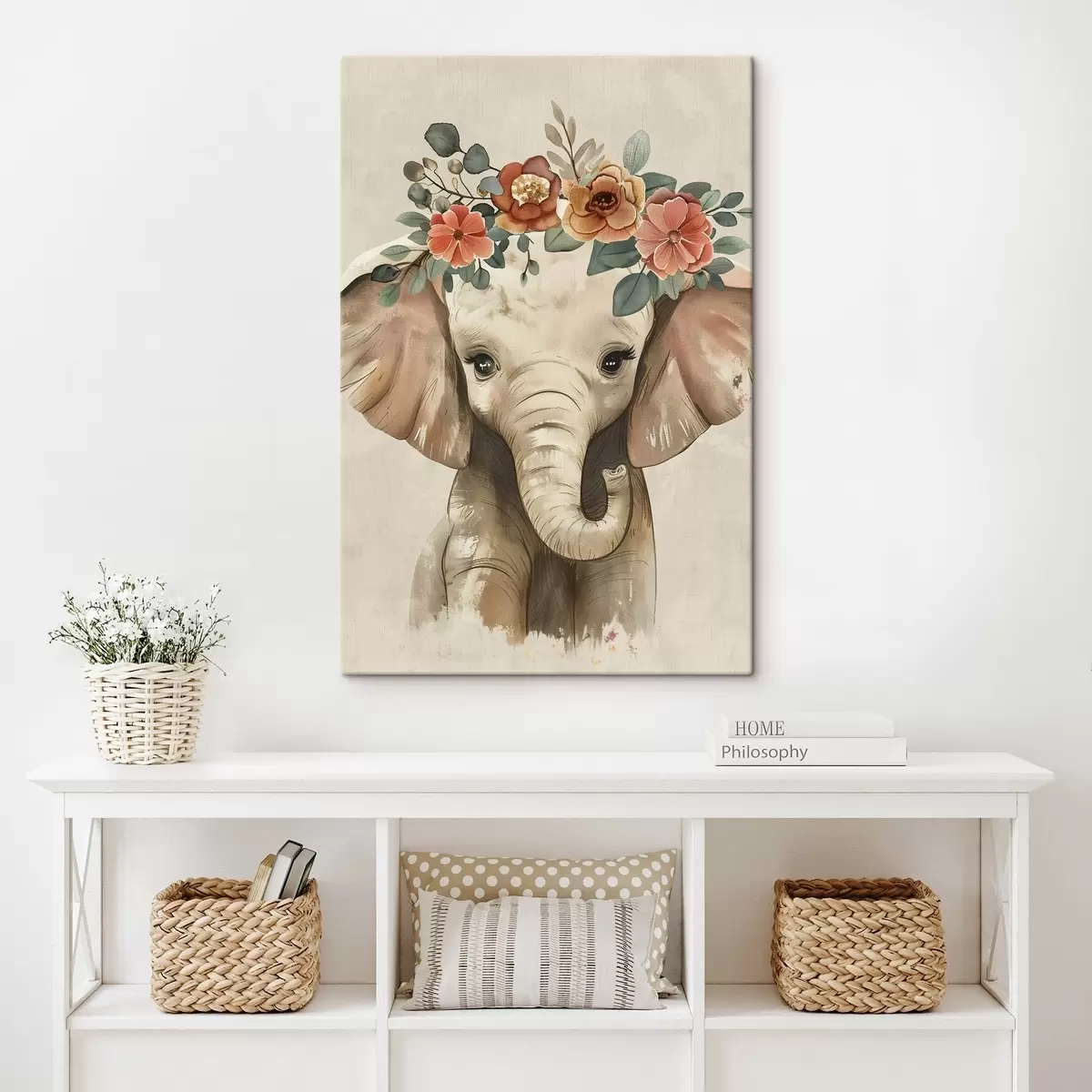 Obraz Śliczny akwarelowy słoń z kwiatami Nr s45330