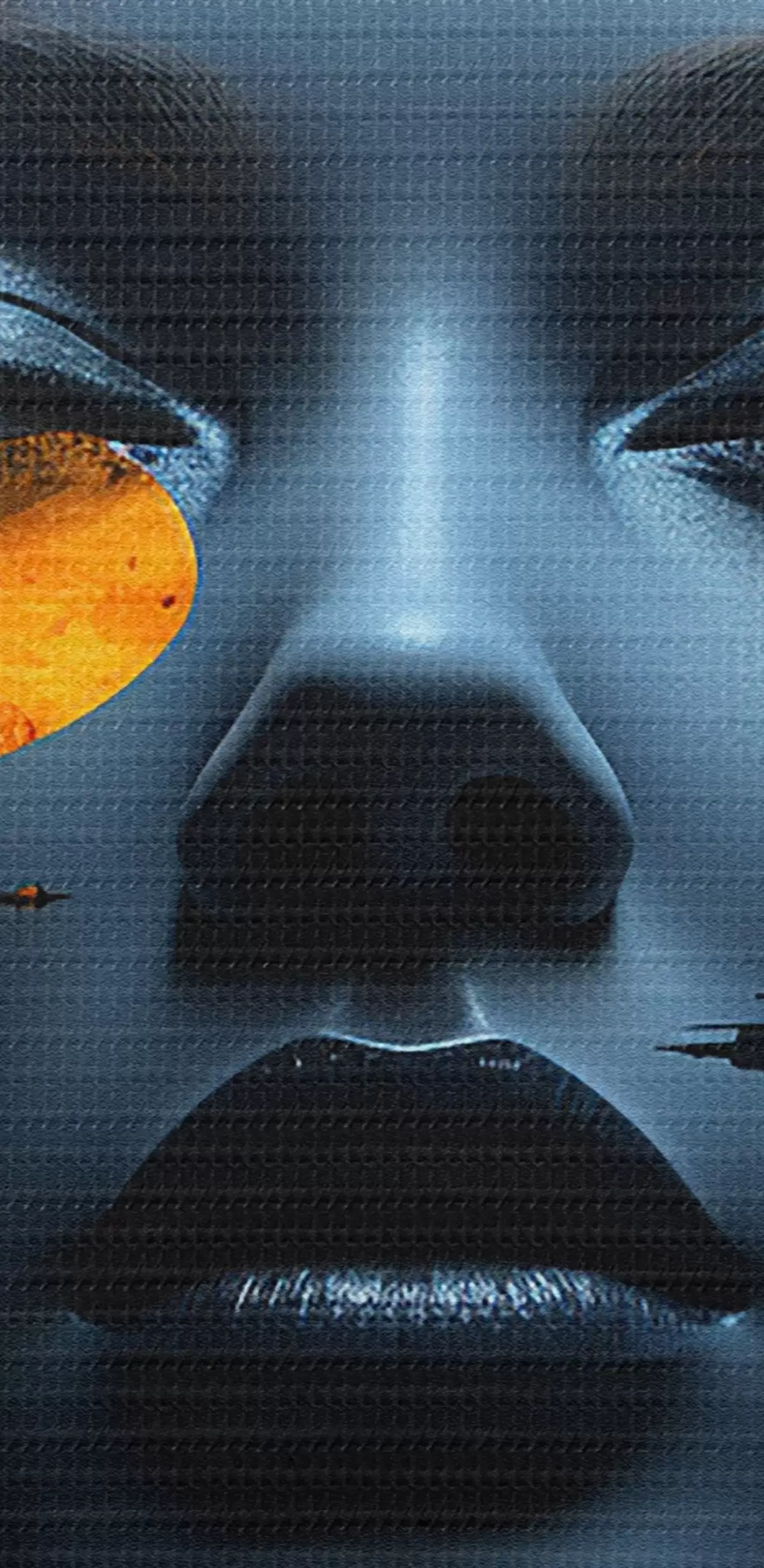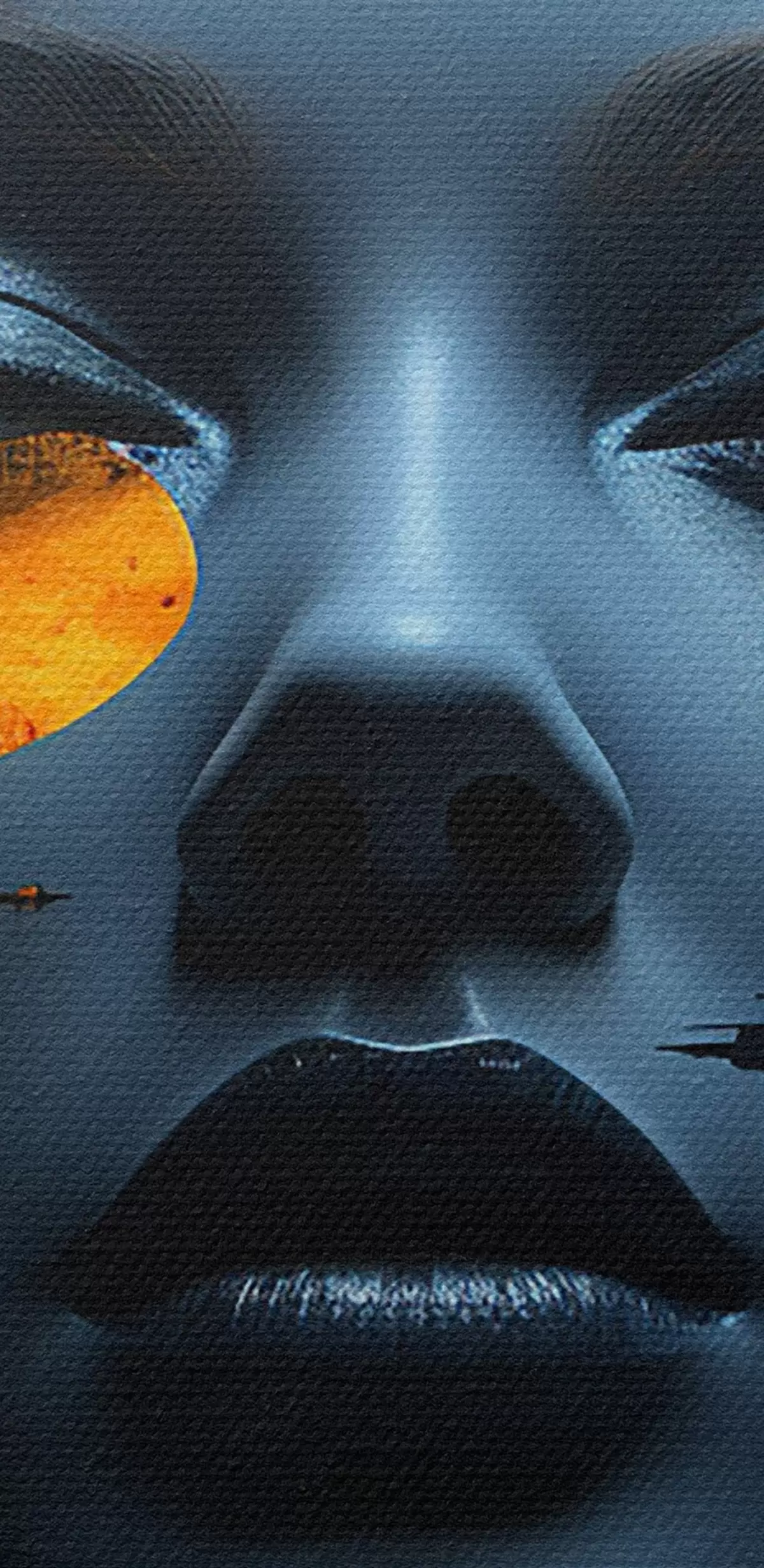 Obraz Ludzie, twarz dziewczyny na tle miasta, abstrakcja Nr s45341