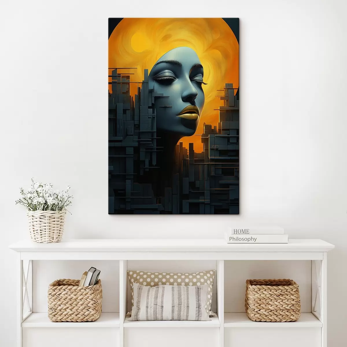 Obraz Ludzie, twarz dziewczyny miasto na abstrakcyjnym tle Nr s45342