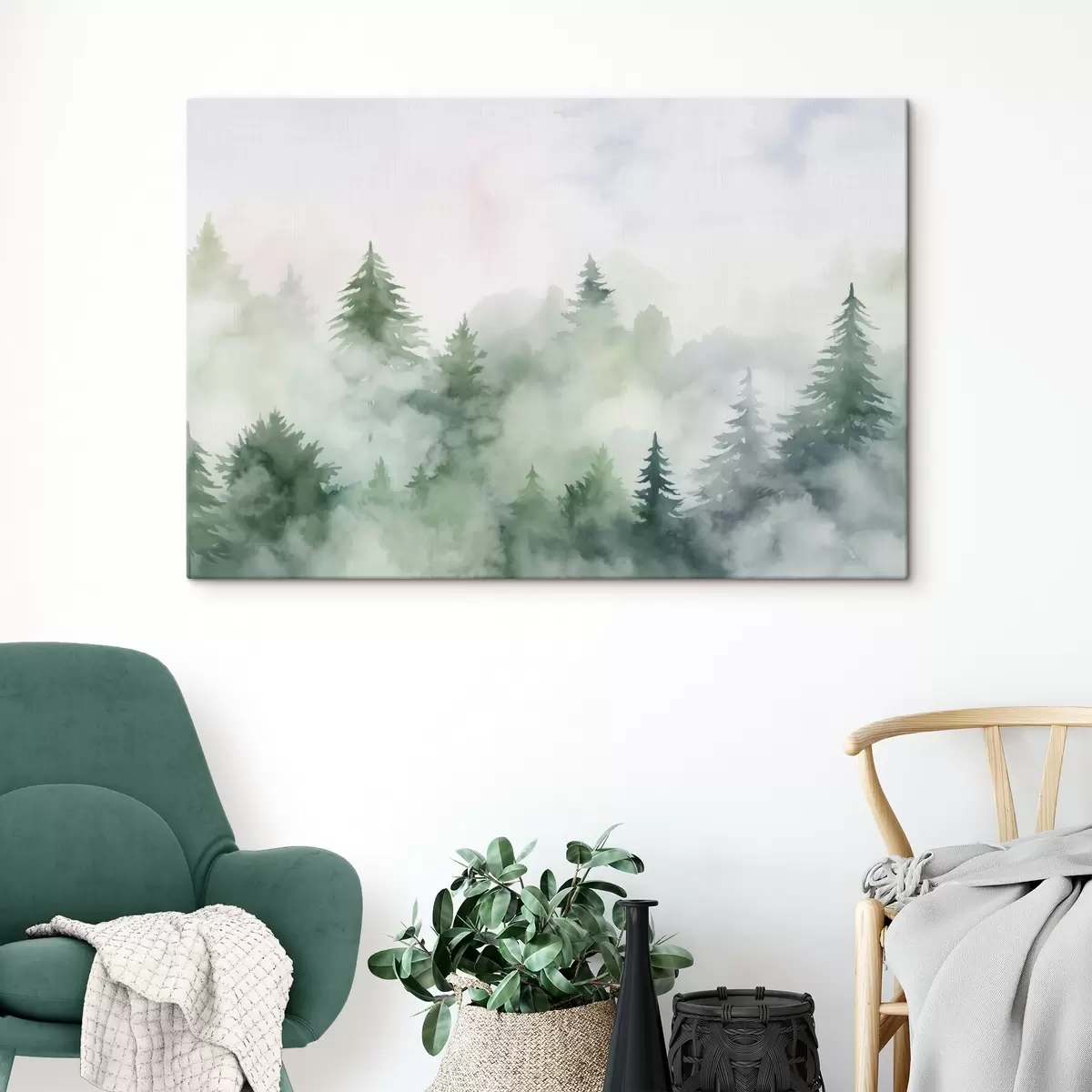 Obraz Las we mgle imitujący akwarelę Nr s45343