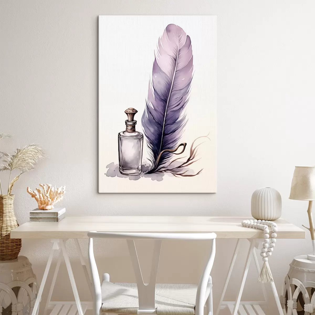 Obraz Akwarelowa ilustracja pióra i szklanej butelki z atramentem Nr s45410