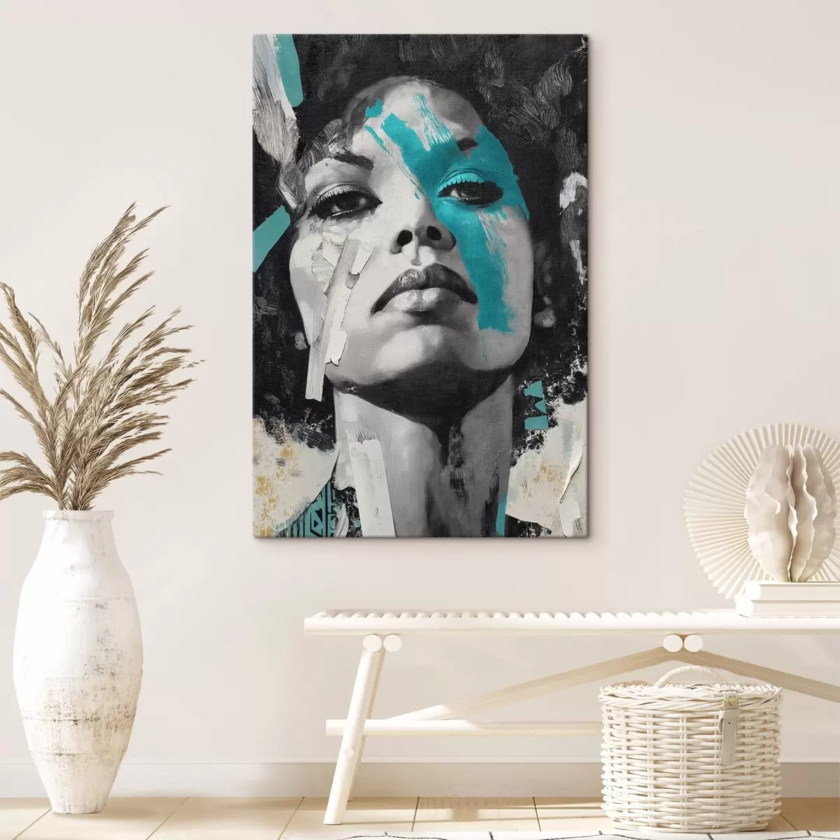 Obraz Portret mieszany z fragmentami kolorowych pociągnięć i tekstur Nr s45416