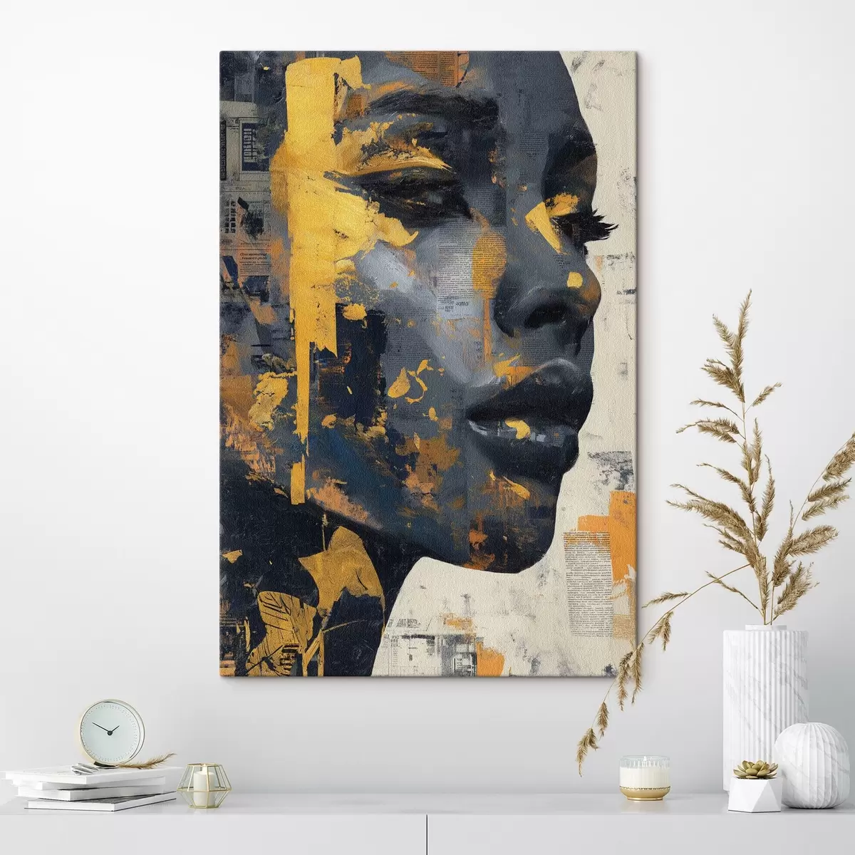 Obraz Portret mieszany z fragmentami gazet i dekoracyjnymi pociągnięciami pędzla s45420