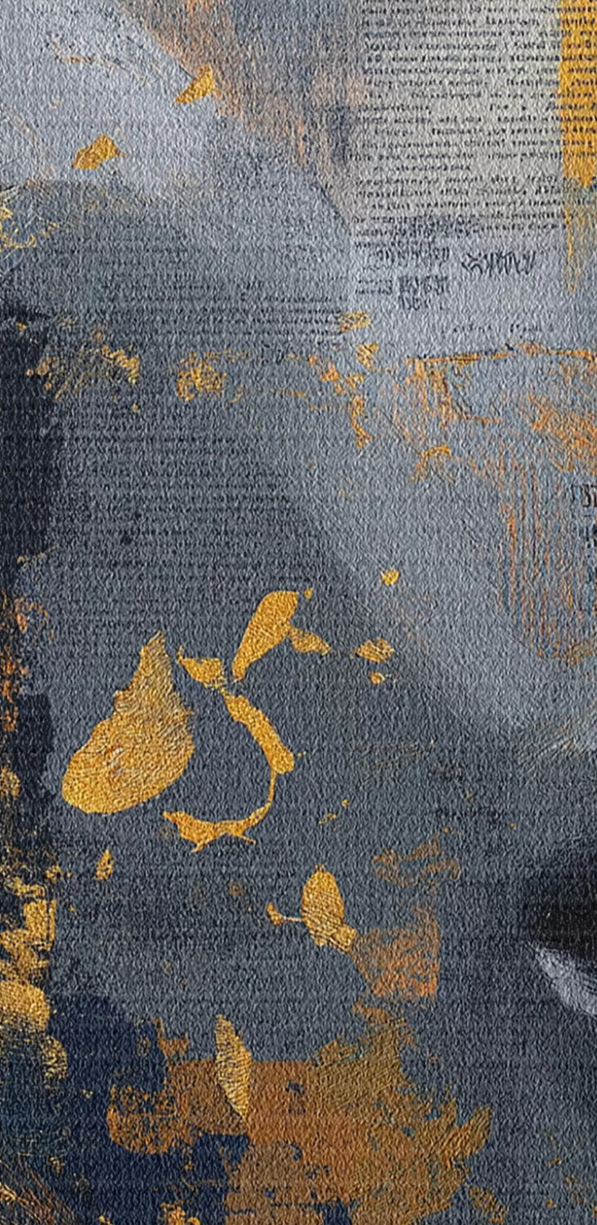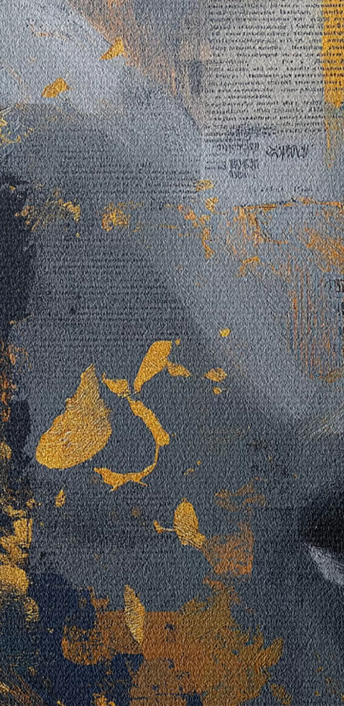 Obraz Portret mieszany z fragmentami gazet i dekoracyjnymi pociągnięciami pędzla Nr s45420