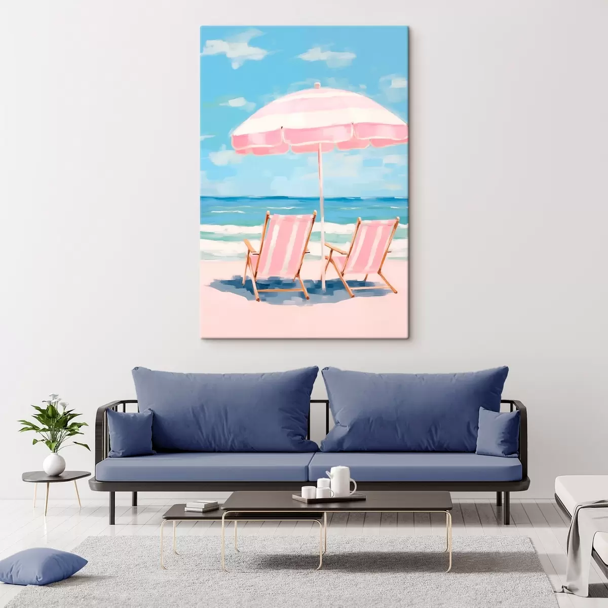 Obraz Parasol plażowy i leżaki na wybrzeżu Nr s45442