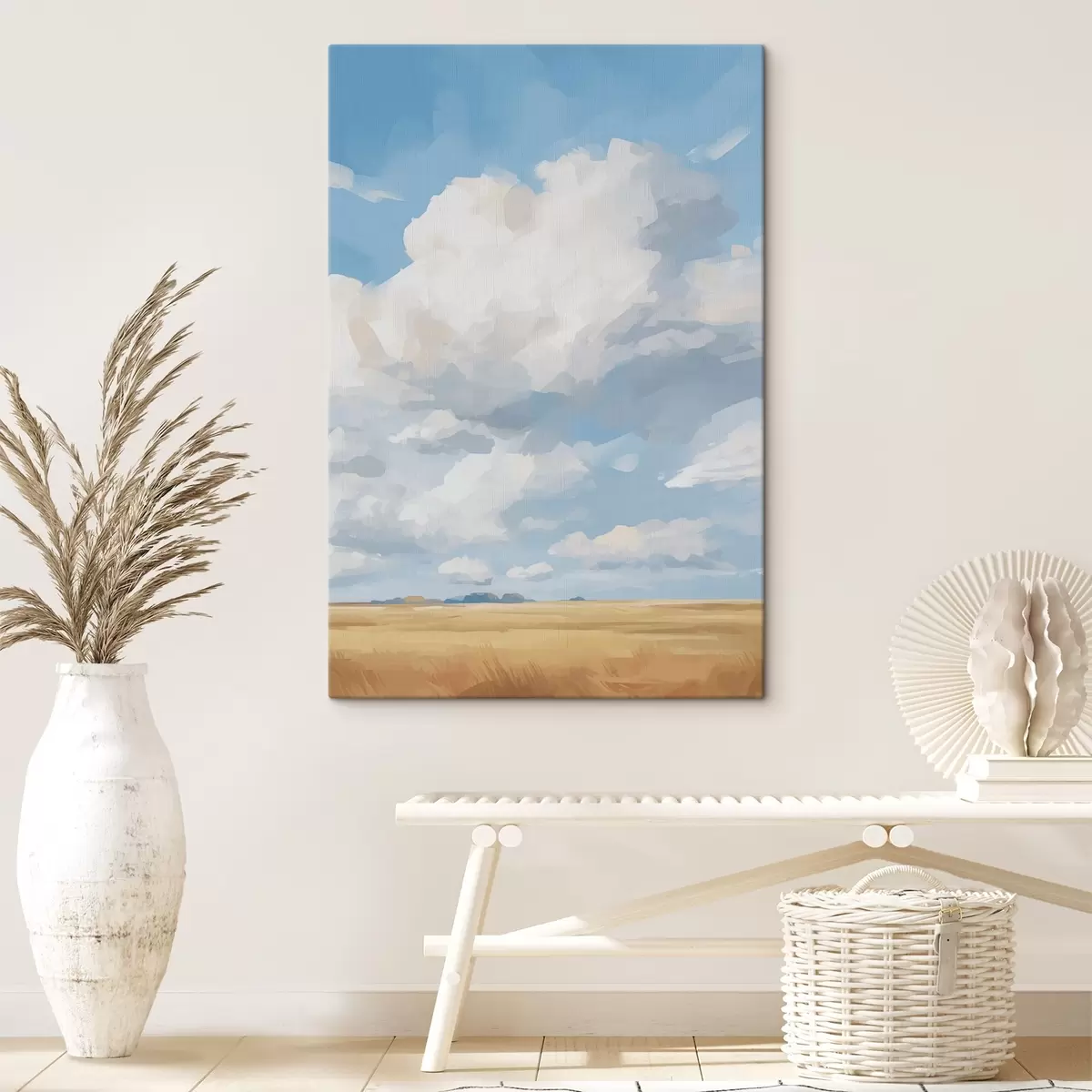 Obraz Pole pszenicy na tle nieba z ogromnymi chmurami Nr s45454