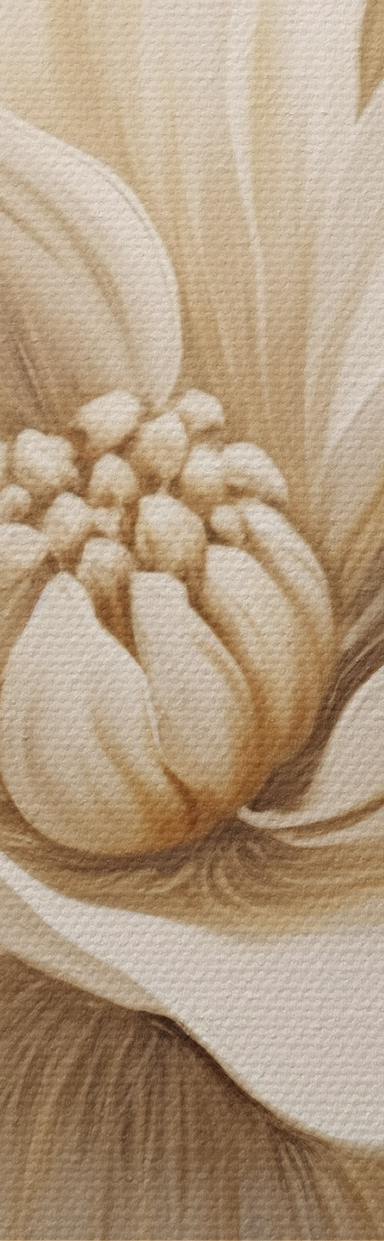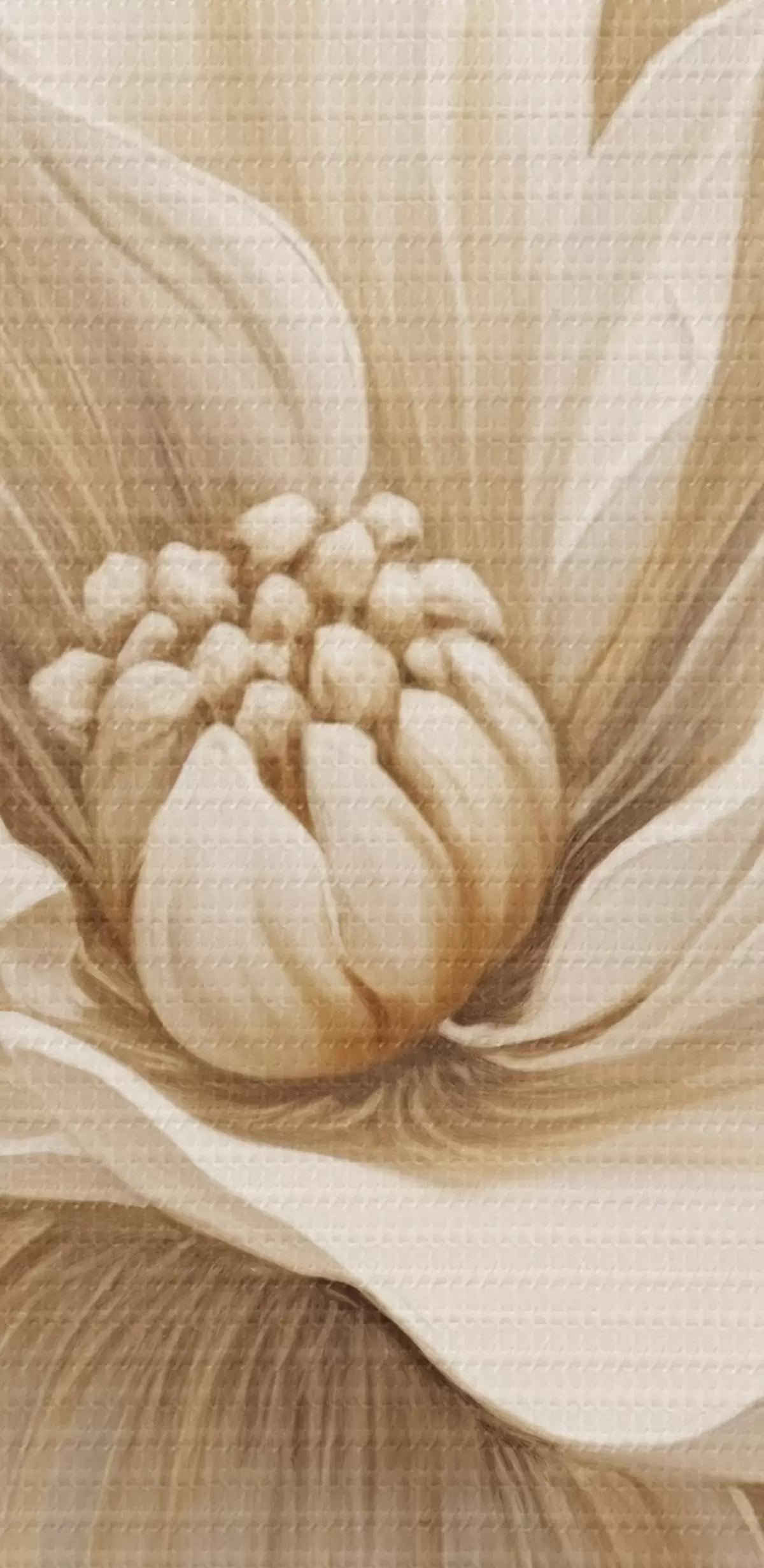 Drobny splot nici na tym płótnie przypomina powierzchnię profesjonalnych płócien artystycznych.