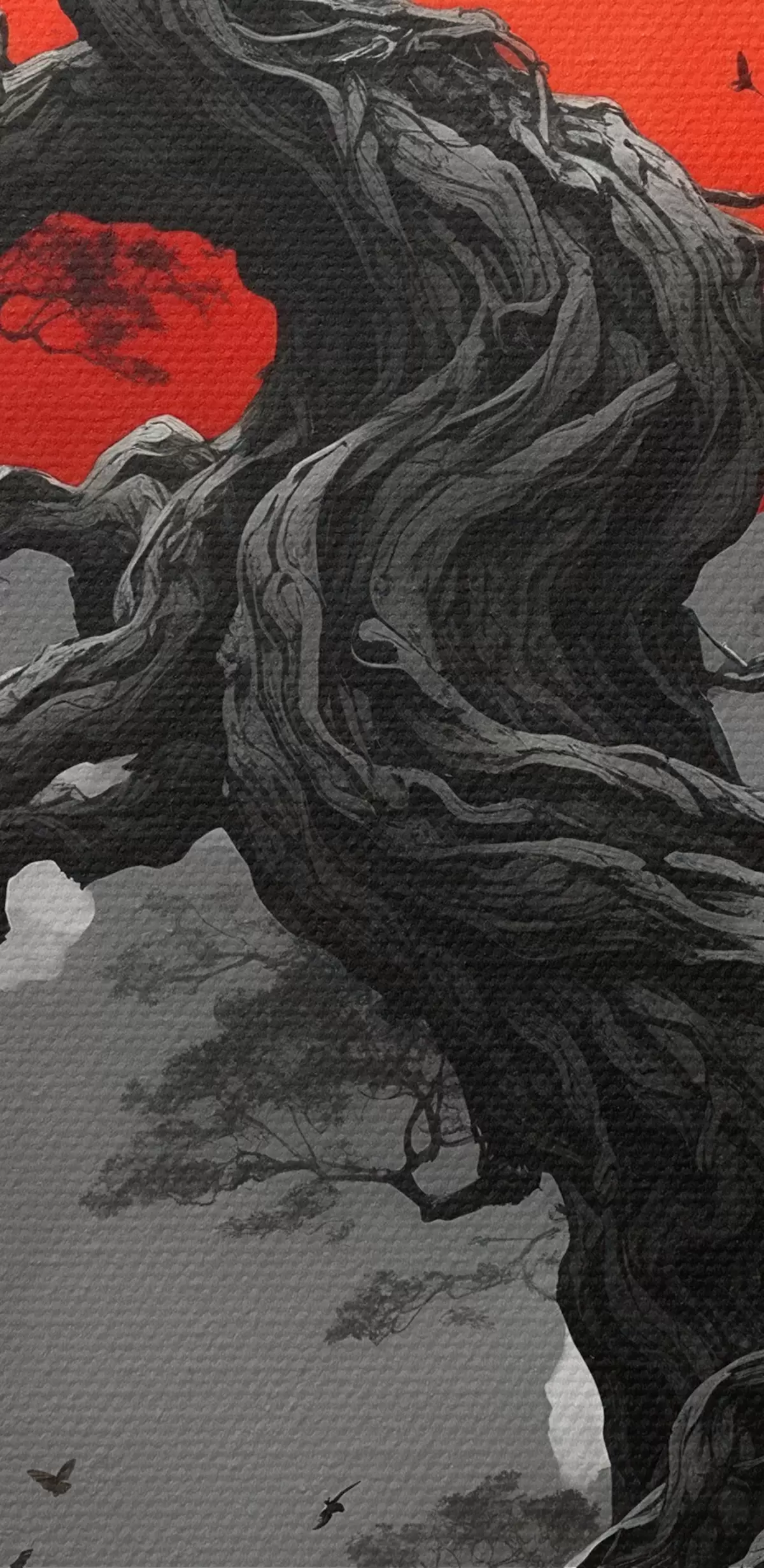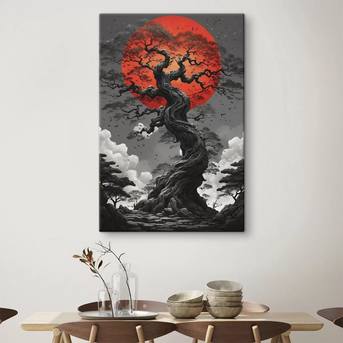 Obraz Drzewo i czerwone słońce Nr s45485