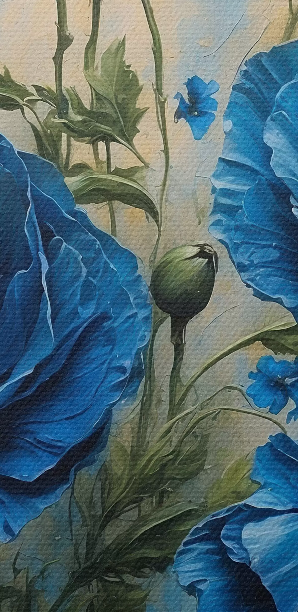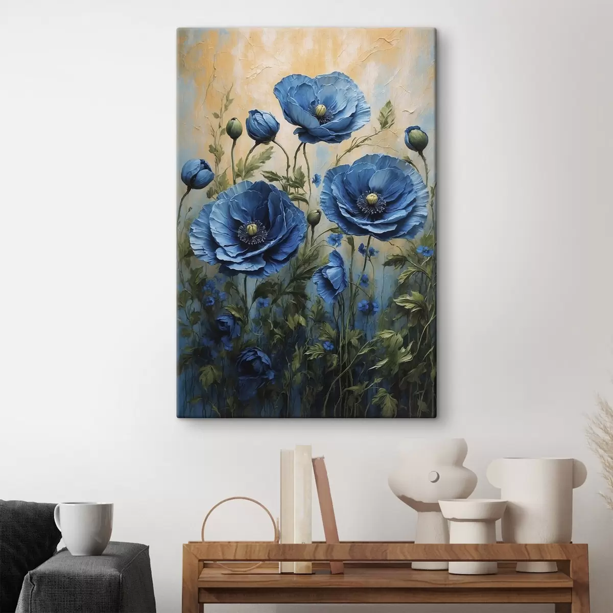 Obraz Duże niebieskie maki z pąkami na jasnym tle Nr s45488
