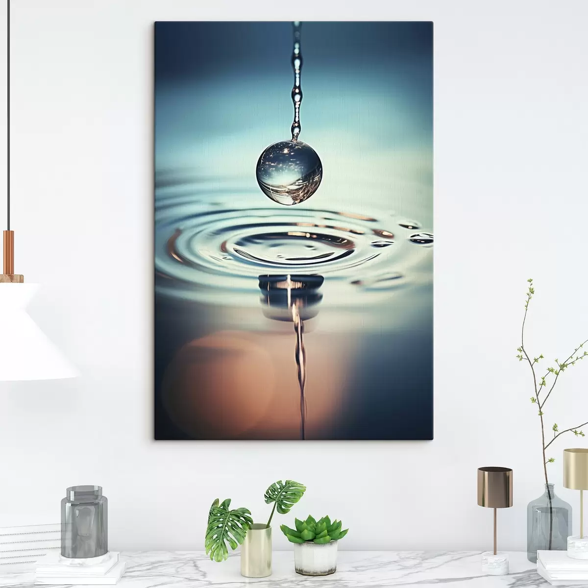 Obraz Kropla wody spadająca z błyskami światła Nr s45501