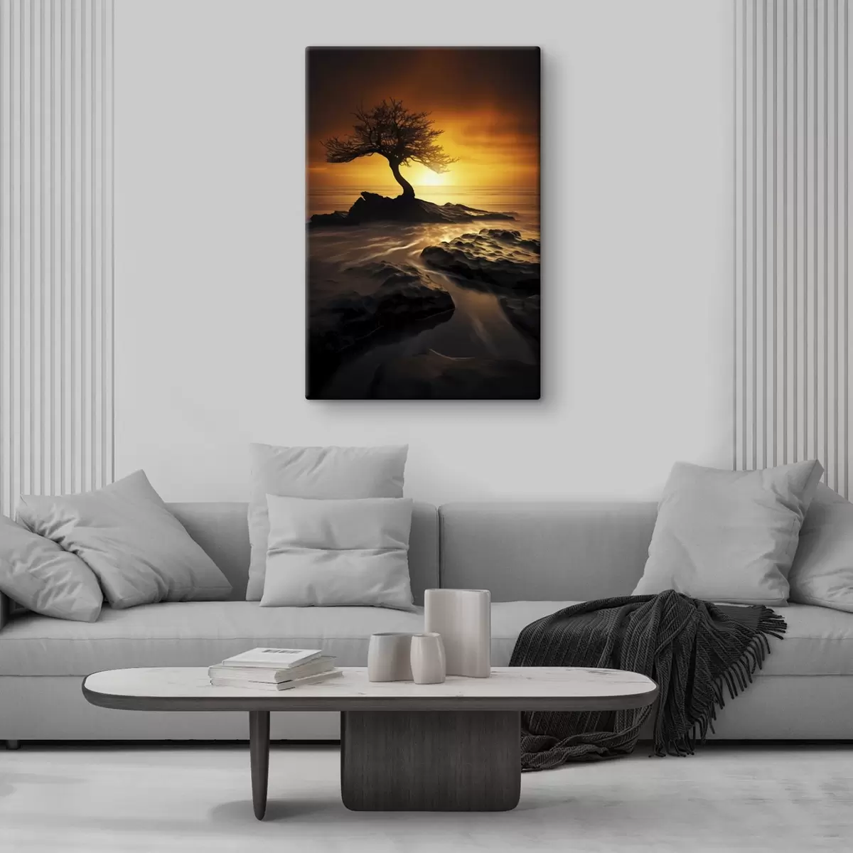 Obraz Samotne drzewo na klifie o zachodzie słońca Nr s45524