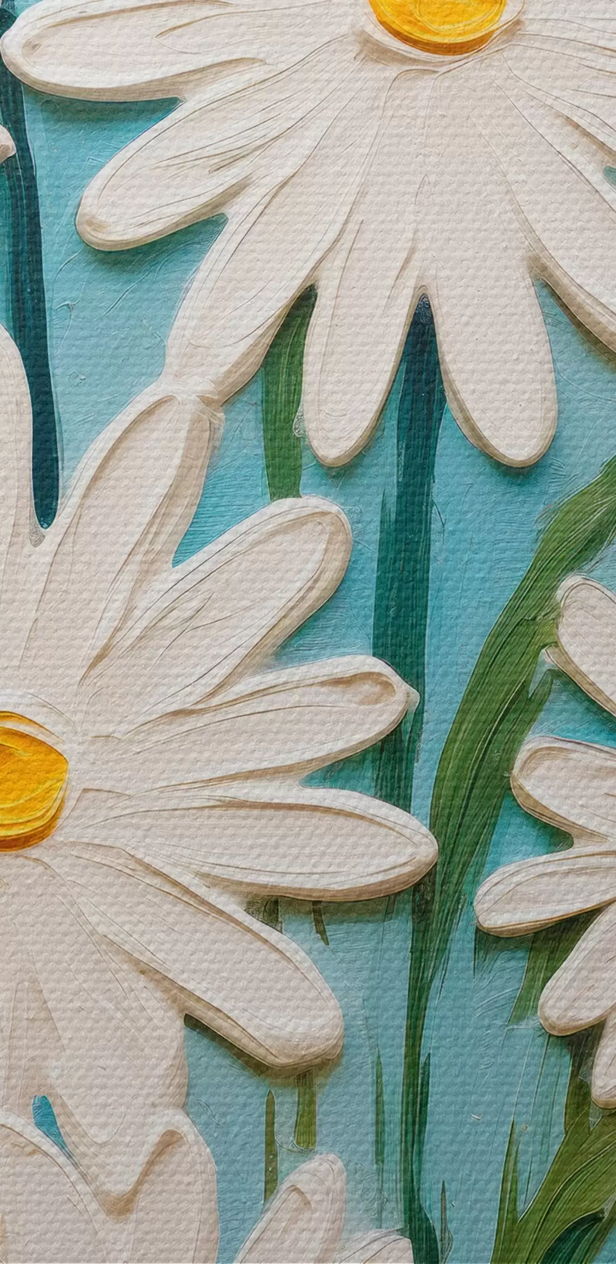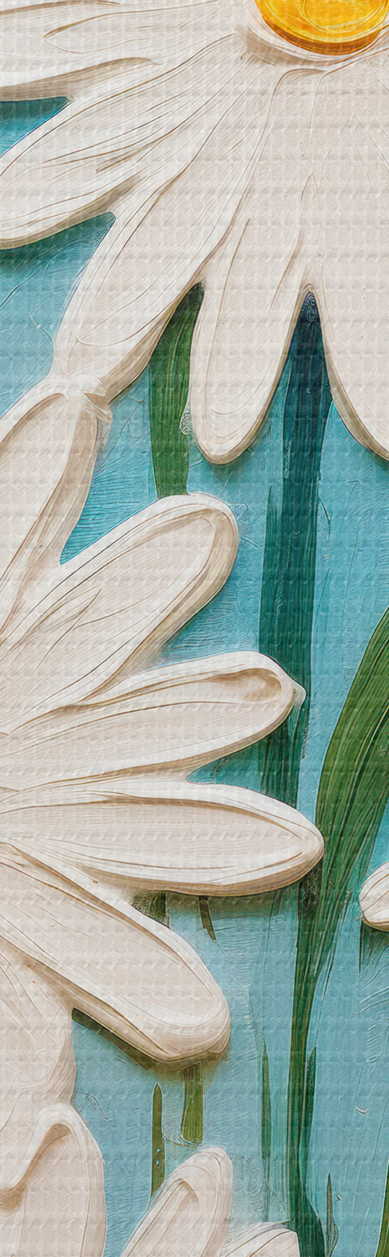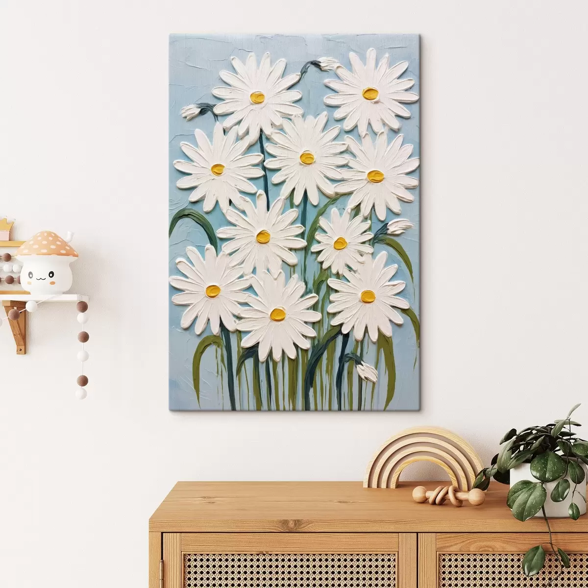 Obraz Stokrotki w stylu malarstwa reliefowego: kompozycja na niebieskim tle Nr s45527