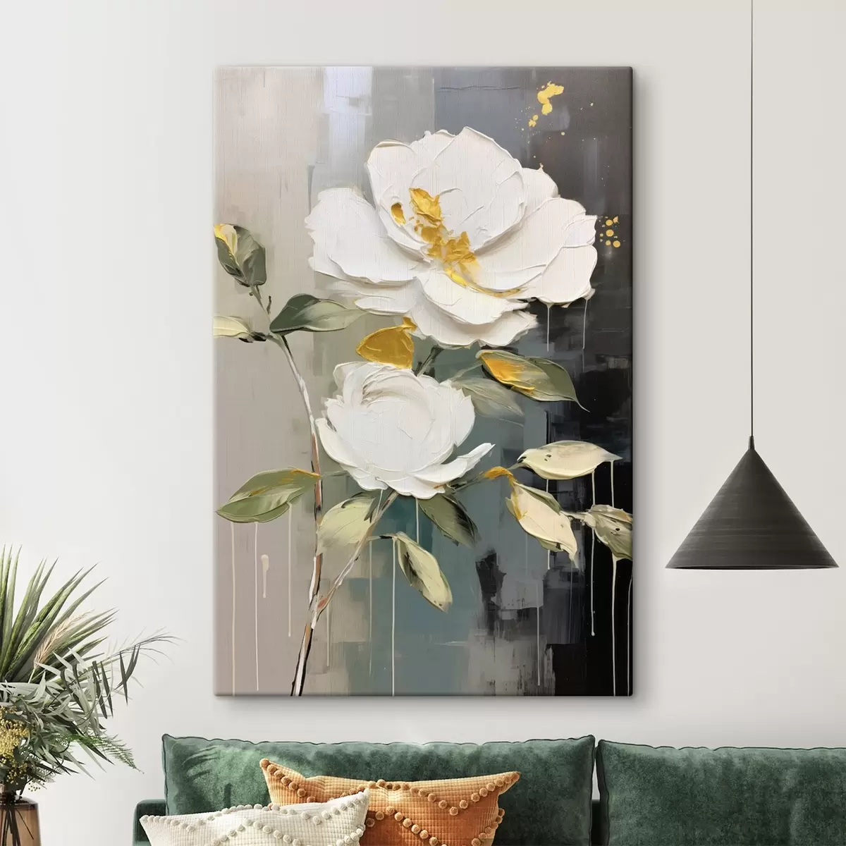 Obraz Obszerne kwiaty: motyw dekoracyjny w jasnych i ciemnych odcieniach Nr s45531