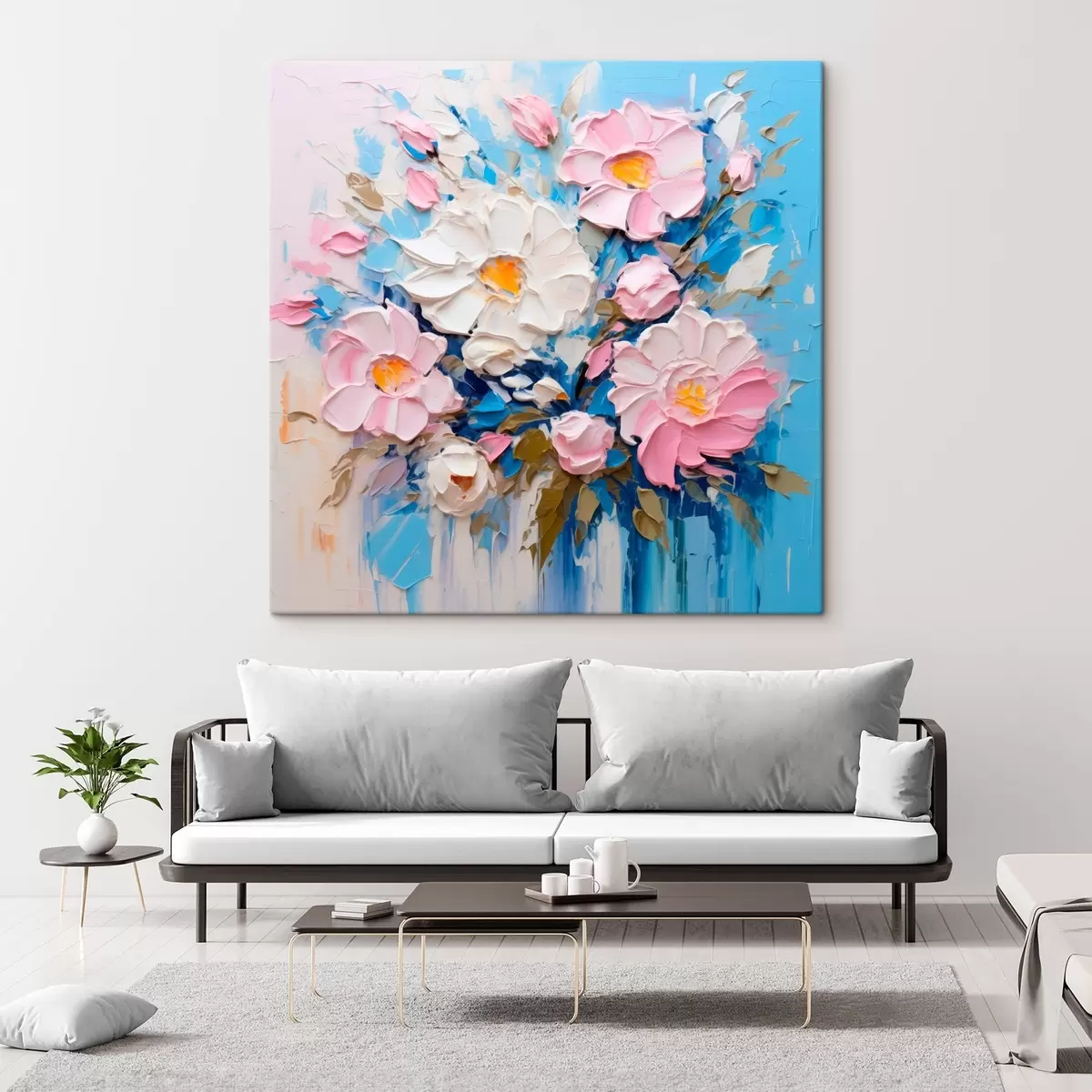 Sprzedajemy obrazy na blejtramie - jest to drewniana rama, na którą naciągnięte jest płótno. Tego obrazu nie trzeba oprawiać; można go powiesić bezpośrednio na ścianie.