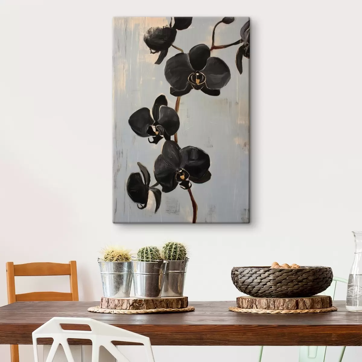 Obraz Storczyki dekoracyjne: czarne kwiaty na szarym tle Nr s45547