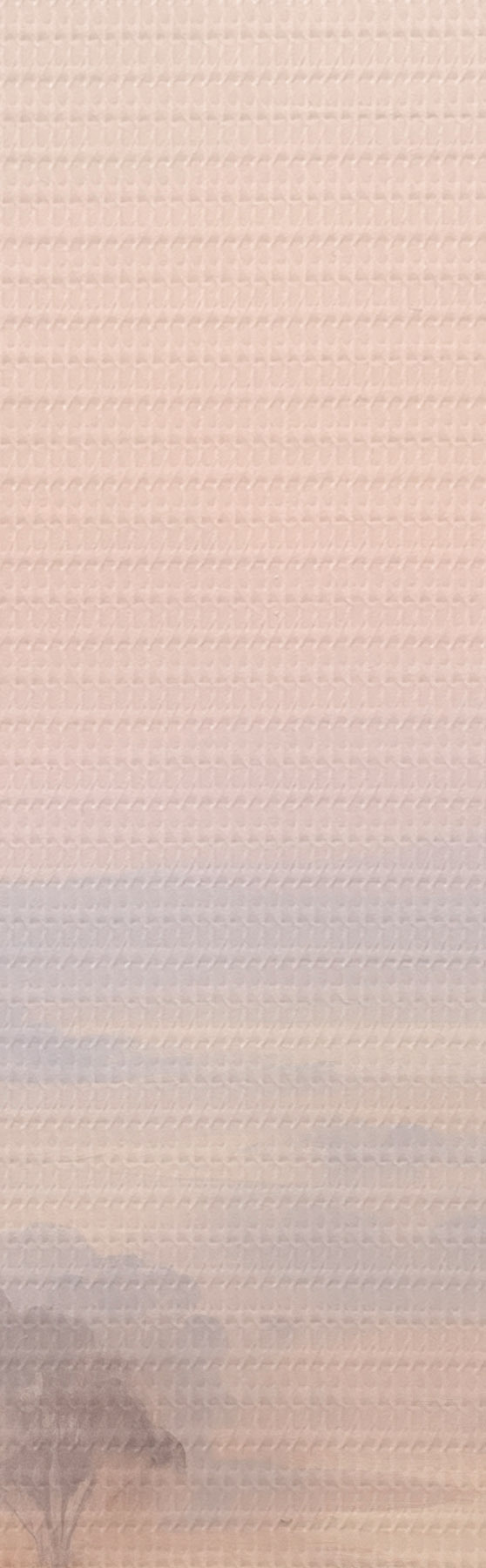 Obraz Krajobraz z krzewami i drzewami w pastelowych odcieniach różu, pomarańczy i brązu, z górami w tle Nr s45554