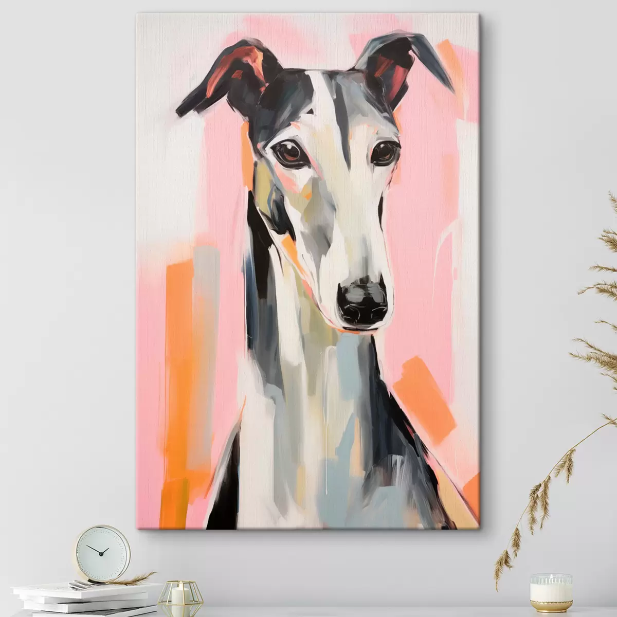 Obraz Chart na tle różowych, pomarańczowych i białych pociągnięć pędzla Nr s45566