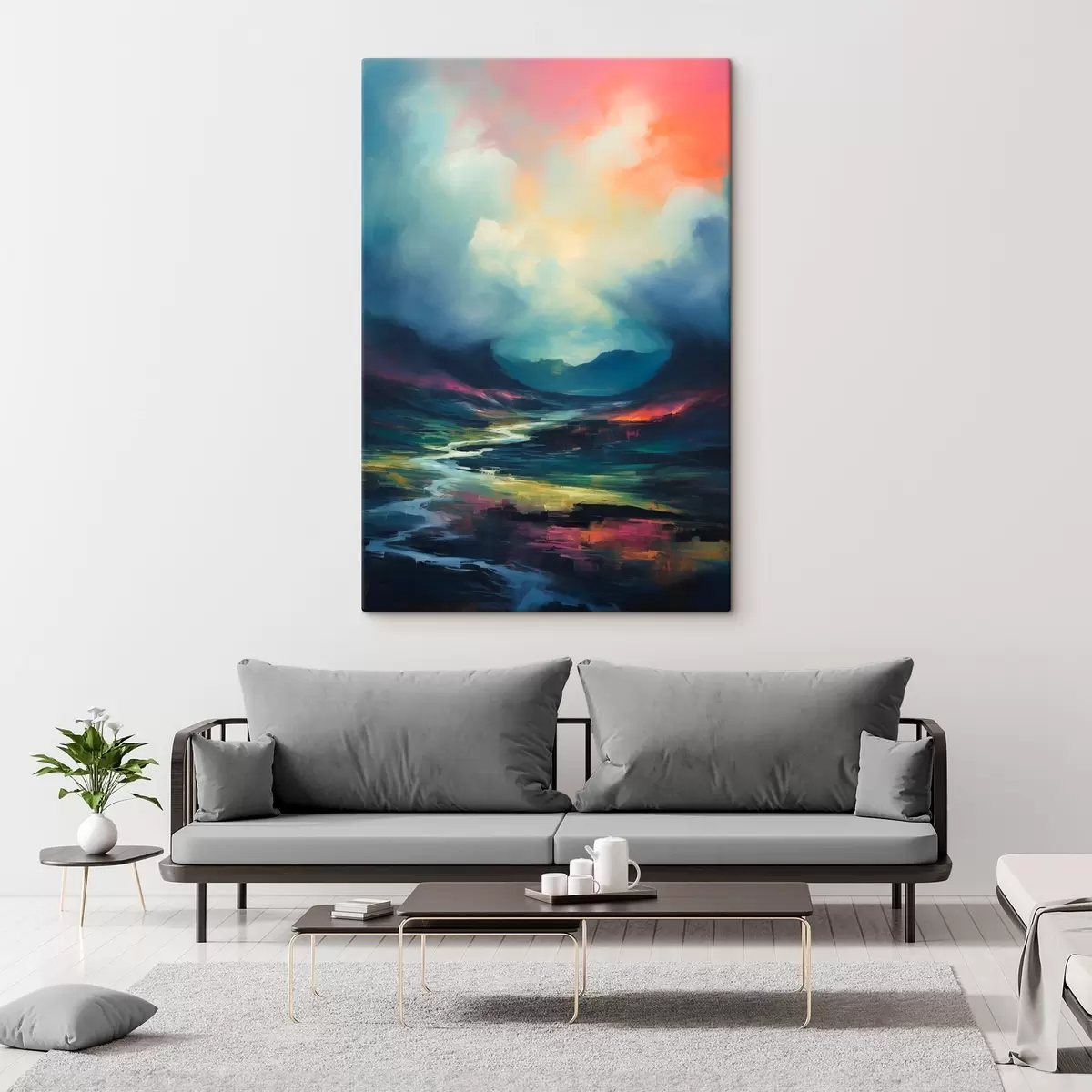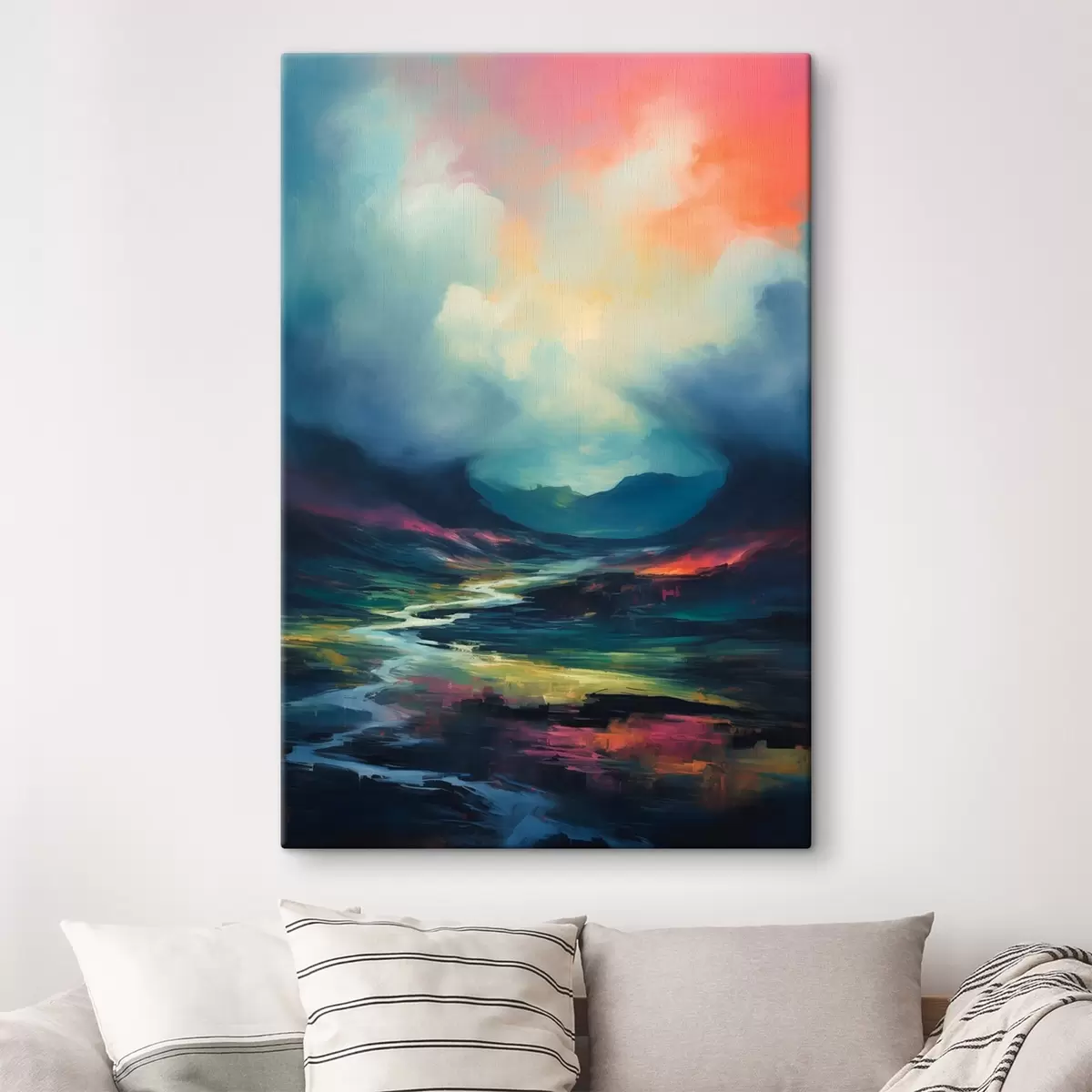 Obraz Abstrakcyjny krajobraz z rzeką i górami Nr s45627